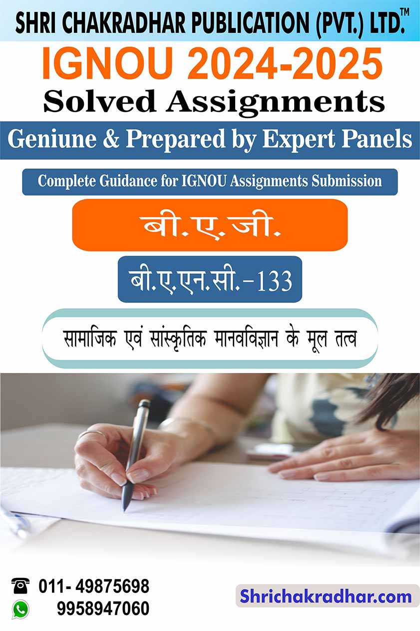 Are you looking for best quality IGNOU Solved Assignment Pdf Booklet? Therefore, we created IGNOU BANC 133 Solved Assignment with fully solved answers for your convenience. This is the perfect IGNOU BANC 133 Solved Assignment in a descriptive way for those students who wish to appear in upcoming TEE Examination and want to submit on their study centre. This IGNOU Solved Assignment BANC 133 is time saving for the students and they will get each and every solutions of the questions asked in the assignment. Answers are well explained and language is easy for better understanding. Above all, buy this BANC 133 Samajik Evam Sanskritik Manavvigyan Ke Mool Tatv Material/Books and get best help for your coming examination.
