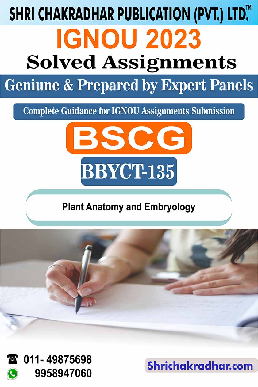 Are you looking for best quality IGNOU Solved Assignment Pdf Booklet? Therefore, we created IGNOU BBYCT 135 Solved Assignment with fully solved answers for your convenience. This is the perfect IGNOU BBYCT 135 Solved Assignment in a descriptive way for those students who wish to appear in upcoming TEE Examination and want to submit on their study centre. This IGNOU Solved Assignment BBYCT 135 is time saving for the students and they will get each and every solutions of the questions asked in the assignment. Answers are well explained and language is easy for better understanding. Above all, buy this BBYCT 135 Plant Anatomy and Embryology IGNOU Solved Assignment from IGNOU Study Material/Books and get best help for your coming examination.