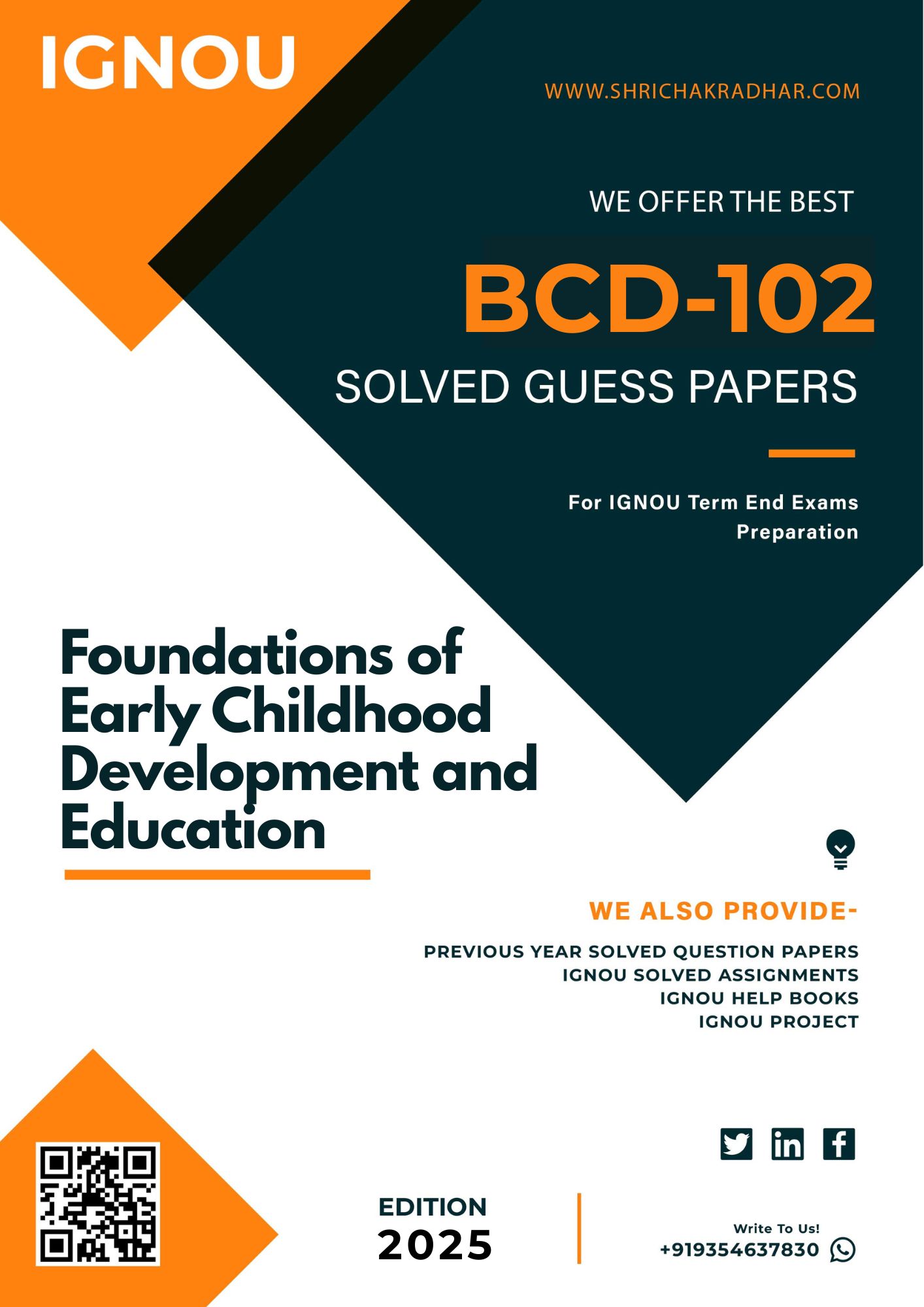 Are you looking for best quality IGNOU Solved Guess Papers Pdf Booklet & IGNOU Important Question Answers? We created IGNOU BCD 102 Solved Guess Papers with fully solved answers for your convenience. Here is the perfect IGNOU BCD 102 Important Question Answers in a descriptive way for those students who wish to pass out their upcoming IGNOU Term End Examination. These Solved Guess Papers solutions are time saving for the students because they will get each solutions of the expected questions shall be asked in the IGNOU BCD 102 question paper. Answers are well explained and language is easy for better understanding. Above all, buy this IGNOU BCD 102 Solved Guess Papers Solutions Foundations of Early Childhood Development and Education Guides/Reference Book and get best help for your coming examination.