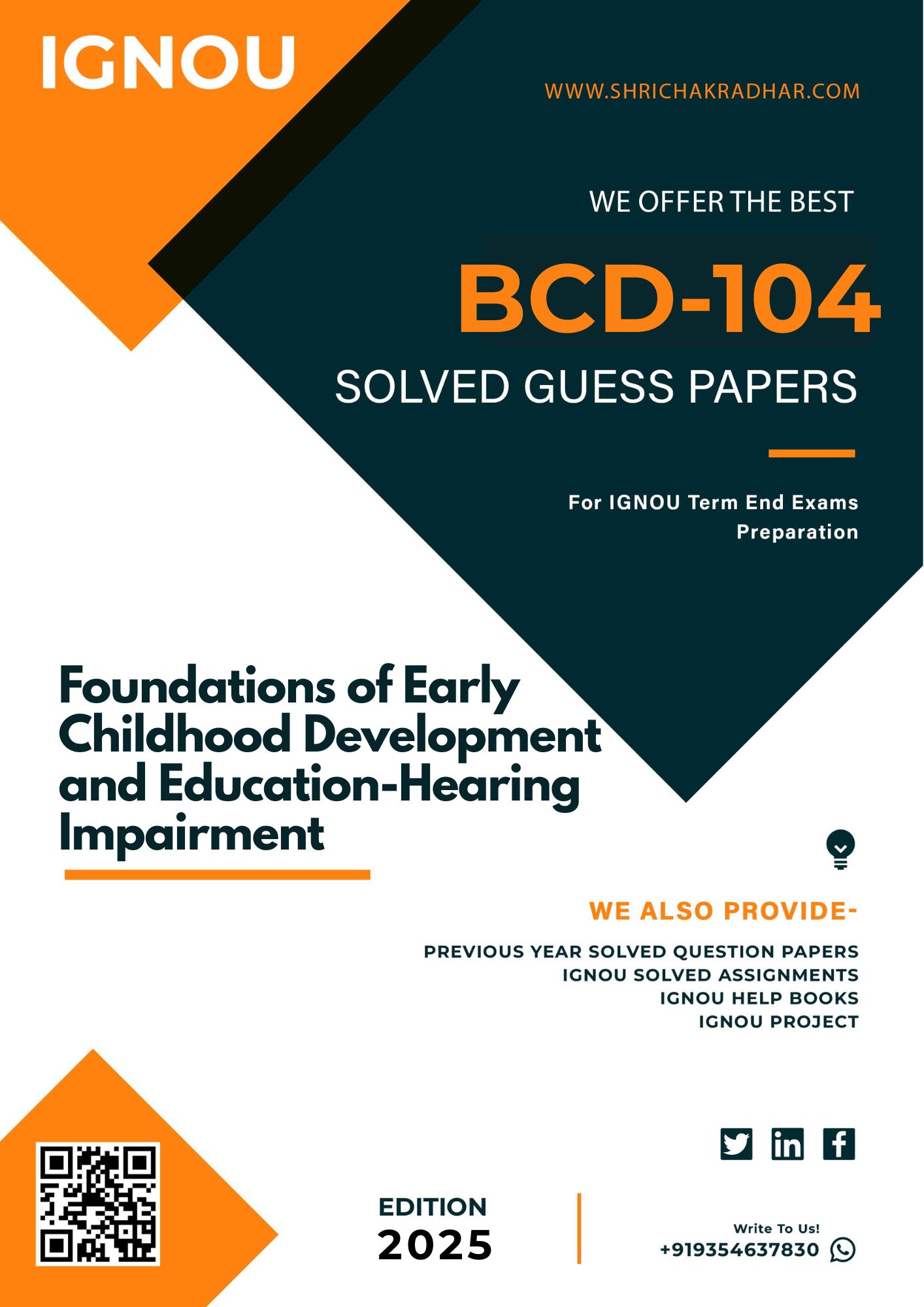 Are you looking for best quality IGNOU Solved Guess Papers Pdf Booklet & IGNOU Important Question Answers? We created IGNOU BCD 104 Solved Guess Papers with fully solved answers for your convenience. Here is the perfect IGNOU BCD 104 Important Question Answers in a descriptive way for those students who wish to pass out their upcoming IGNOU Term End Examination. These Solved Guess Papers solutions are time saving for the students because they will get each solutions of the expected questions shall be asked in the IGNOU BCD 104 question paper. Answers are well explained and language is easy for better understanding. Above all, buy this IGNOU BCD 104 Solved Guess Papers Solutions Foundations of Early Childhood Development and Education Guides/Reference Book and get best help for your coming examination.