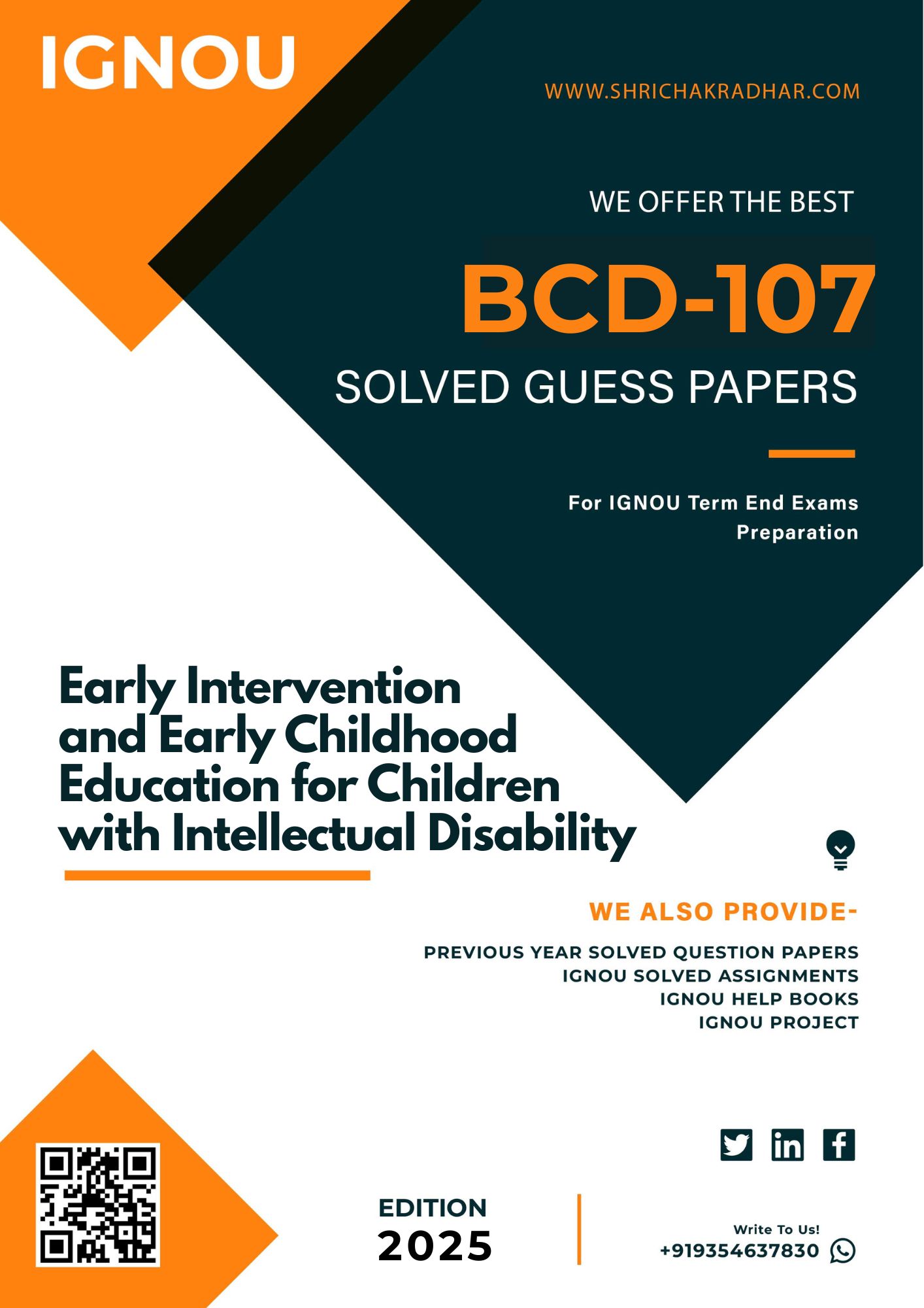 Are you looking for best quality IGNOU Solved Guess Papers Pdf Booklet & IGNOU Important Question Answers? We created IGNOU BCD 107 Solved Guess Papers with fully solved answers for your convenience. Here is the perfect IGNOU BCD 107 Important Question Answers in a descriptive way for those students who wish to pass out their upcoming IGNOU Term End Examination. These Solved Guess Papers solutions are time saving for the students because they will get each solutions of the expected questions shall be asked in the IGNOU BCD 107 question paper. Answers are well explained and language is easy for better understanding. Above all, buy this IGNOU BCD 107 Solved Guess Papers Solutions Early Intervention and Early Childhood Education for Children with Intellectual Disability Guides/Reference Book and get best help for your coming examination.