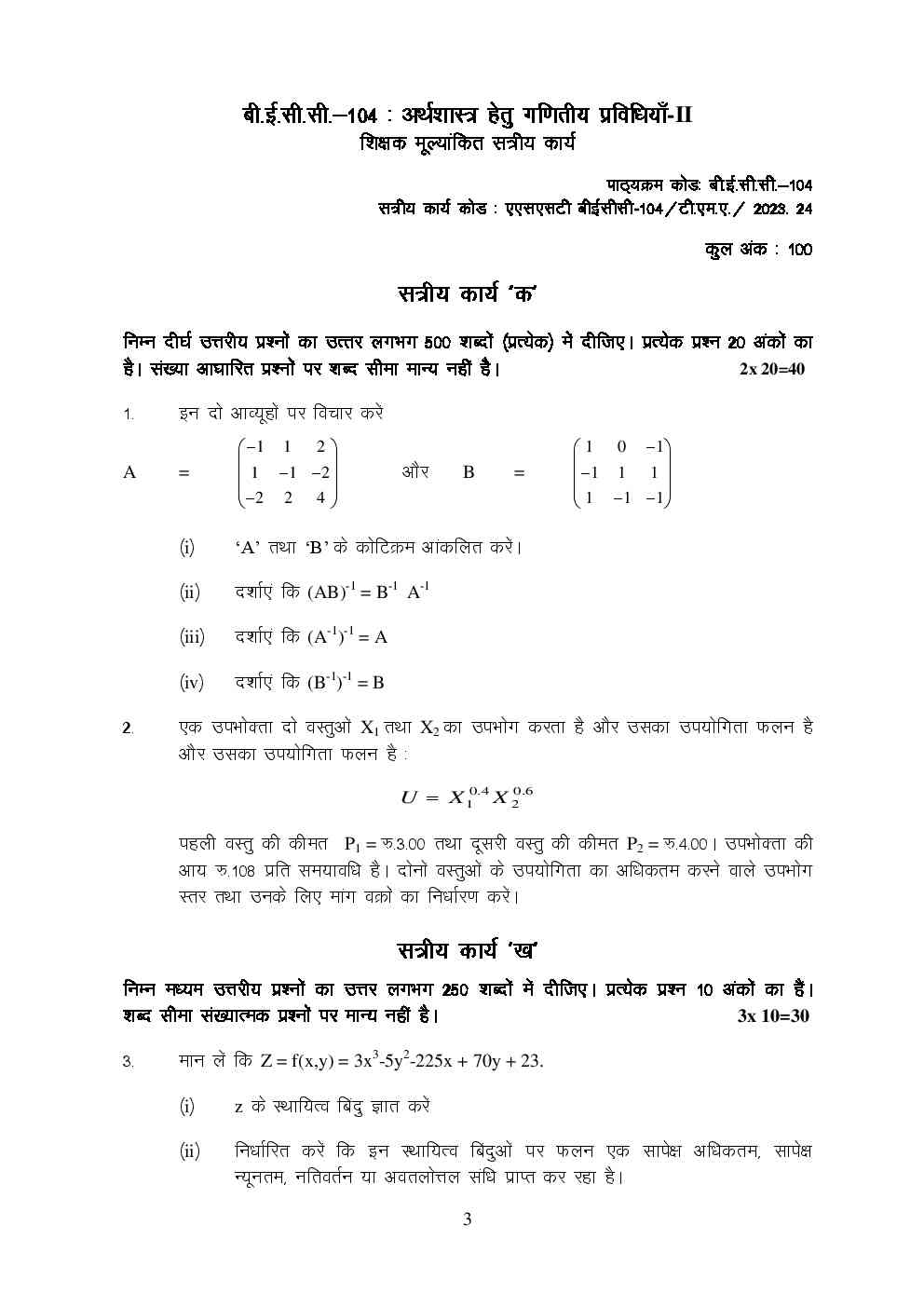 Are you looking for best quality IGNOU Solved Assignment Pdf Booklet? Therefore, we created IGNOU BECC 104 Solved Assignment with fully solved answers for your convenience. This is the perfect IGNOU BECC 104 Solved Assignment in a descriptive way for those students who wish to appear in upcoming TEE Examination and want to submit on their study centre. This IGNOU Solved Assignment BECC 104 is time saving for the students and they will get each and every solutions of the questions asked in the assignment. Answers are well explained and language is easy for better understanding. Above all, buy this BECC 104 Arthshastra Mein Ganitiye Vidhiyan II Solved Assignment from IGNOU Study Material/Books and get best help for your coming examination.