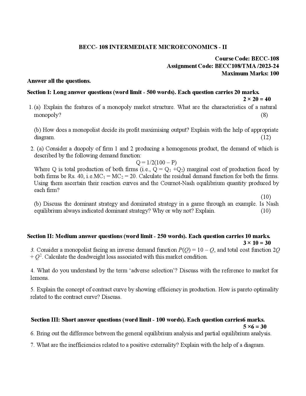 IGNOU BECC 108 Solved Assignment 2023-24