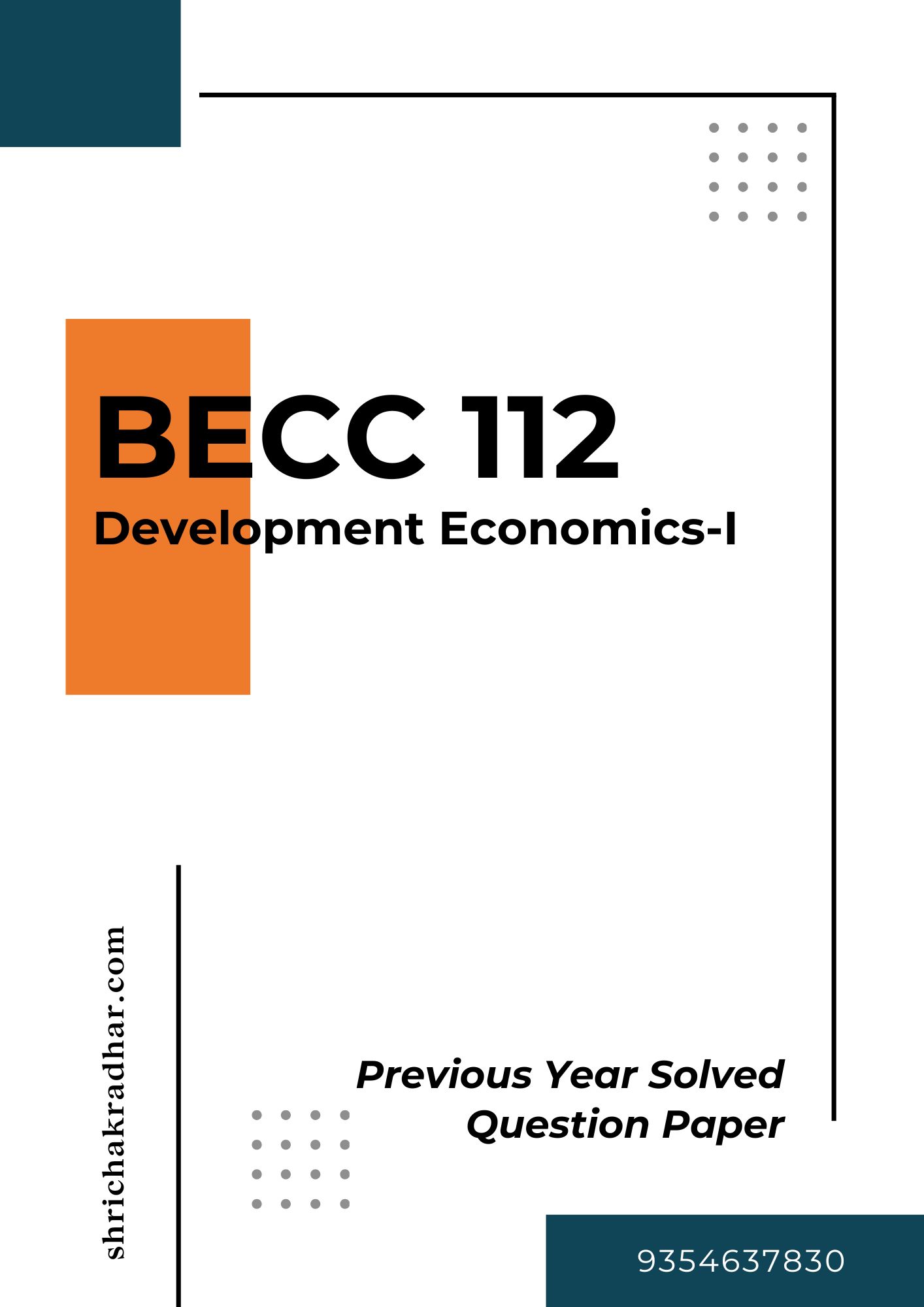 Delivery type: After successful payment, you will be redirected to the download page, now click on the download button and you will be able to download the BECC 112 Previous Years Solved Question Papers DEVELOPMENT ECONOMICS I  PDF file. You will also receive the download link on your mail. In addition, if you have any query or need any support please mail us at sales@shrichakradhar.com.