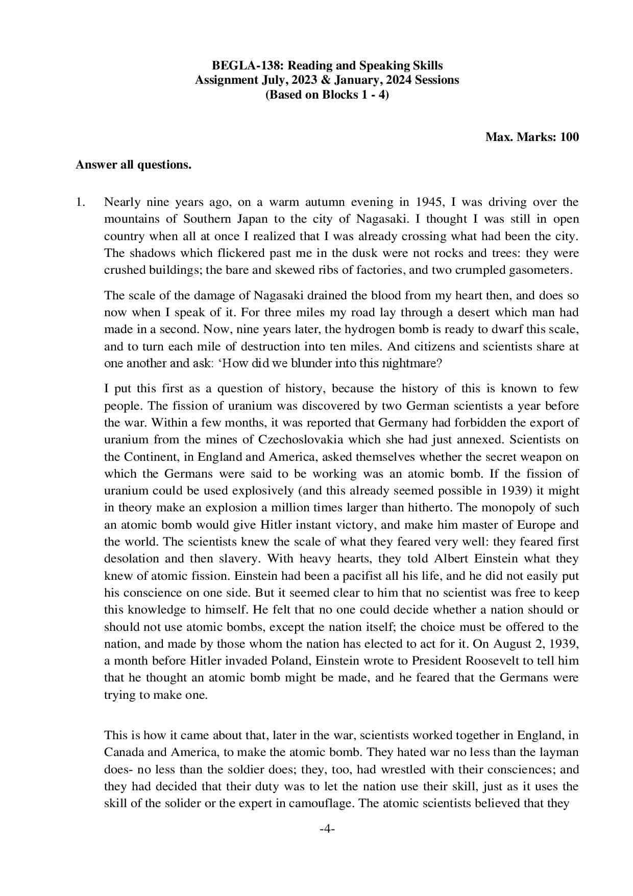 IGNOU BEGLA 138 Solved Assignment 2023-24