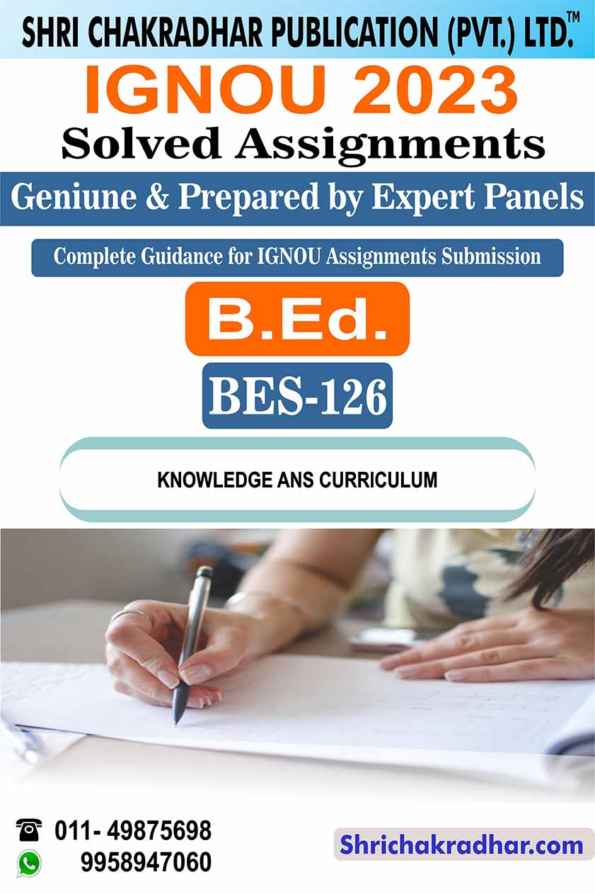 Are you looking for best quality IGNOU Solved Assignment Pdf Booklet? Therefore, we created IGNOU BES 126 Solved Assignment with fully solved answers for your convenience. This is the perfect IGNOU BES 126 Solved Assignment in a descriptive way for those students who wish to appear in upcoming TEE Examination and want to submit on their study centre. This IGNOU Solved Assignment BES 126 is time saving for the students and they will get each and every solutions of the questions asked in the assignment. Answers are well explained and language is easy for better understanding. Above all, buy this BES 126 Knowledge and Curriculum IGNOU Solved Assignment from IGNOU Study Material/Books and get best help for your coming examination.