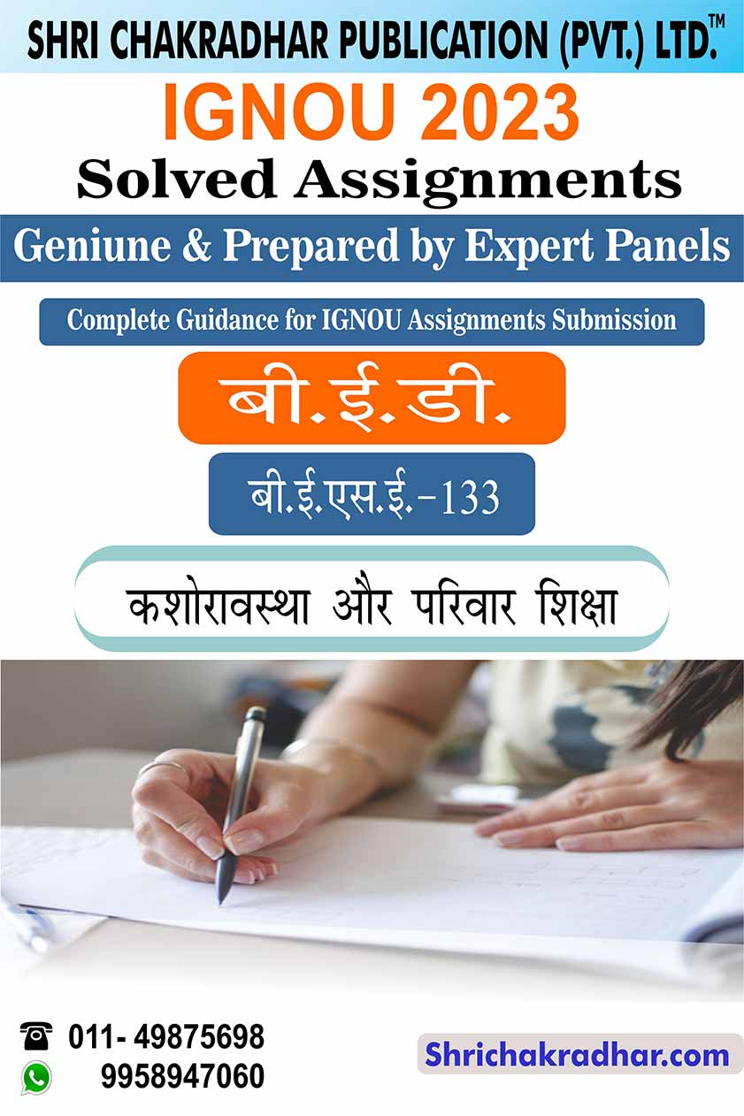 Are you looking for best quality IGNOU Solved Assignment Pdf Booklet? Therefore, we created IGNOU BESE 133 Solved Assignment with fully solved answers for your convenience. This is the perfect IGNOU BESE 133 Solved Assignment in a descriptive way for those students who wish to appear in upcoming TEE Examination and want to submit on their study centre. This IGNOU Solved Assignment BESE 133 is time saving for the students and they will get each and every solutions of the questions asked in the assignment. Answers are well explained and language is easy for better understanding. Above all, buy this BESE 133 Kishoravastha Aur Parivaar Shiksha IGNOU Solved Assignment from IGNOU Study Material/Books and get best help for your coming examination.