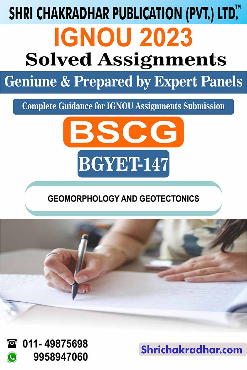 Are you looking for best quality IGNOU Solved Assignment Pdf Booklet? Therefore, we created IGNOU BGYET 147 Solved Assignment with fully solved answers for your convenience. This is the perfect IGNOU BGYET 147 Solved Assignment in a descriptive way for those students who wish to appear in upcoming TEE Examination and want to submit on their study centre. This IGNOU Solved Assignment BGYET 147 is time saving for the students and they will get each and every solutions of the questions asked in the assignment. Answers are well explained and language is easy for better understanding. Above all, buy this BGYET 147 Geomorphology and Geo-tectonics IGNOU Solved Assignment from IGNOU Study Material/Books and get best help for your coming examination.