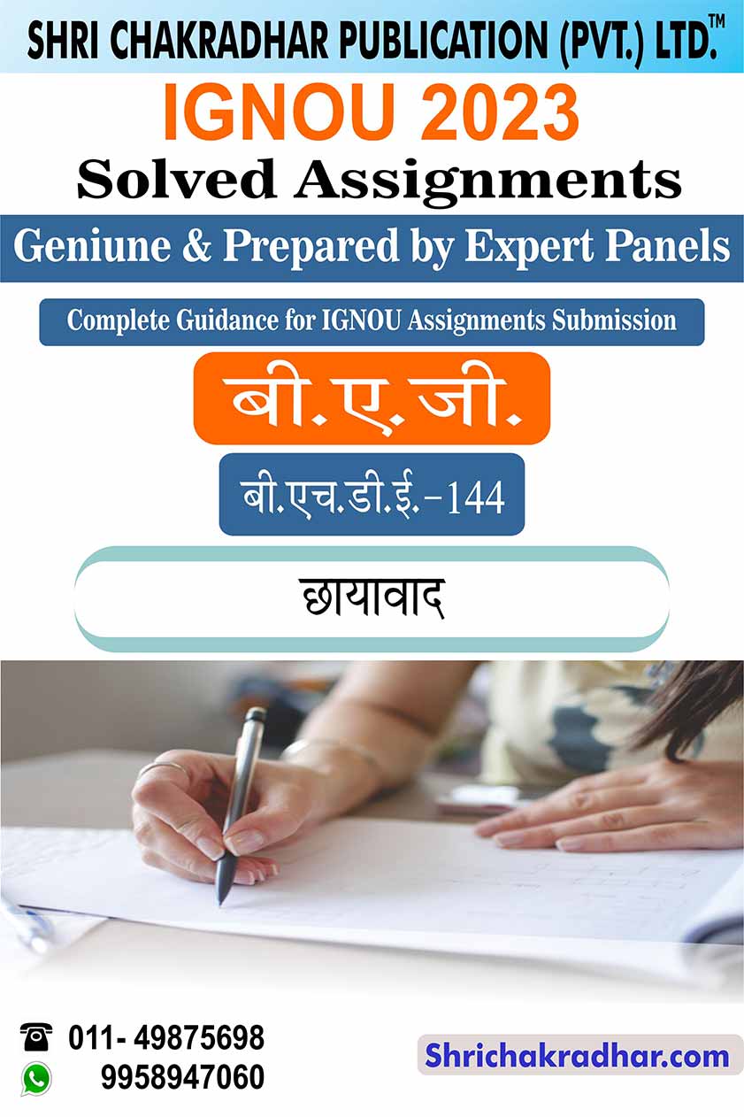 Are you looking for best quality IGNOU Solved Assignment Pdf Booklet? Therefore, we created IGNOU BHDE 144 Solved Assignment with fully solved answers for your convenience. This is the perfect IGNOU BHDE 144 Solved Assignment in a descriptive way for those students who wish to appear in upcoming TEE Examination and want to submit on their study centre. This IGNOU Solved Assignment BHDE 144 is time saving for the students and they will get each and every solutions of the questions asked in the assignment. Answers are well explained and language is easy for better understanding. Above all, buy this BHDE 144 Chhayavad IGNOU Solved Assignment from IGNOU Study Material/Books and get best help for your coming examination.