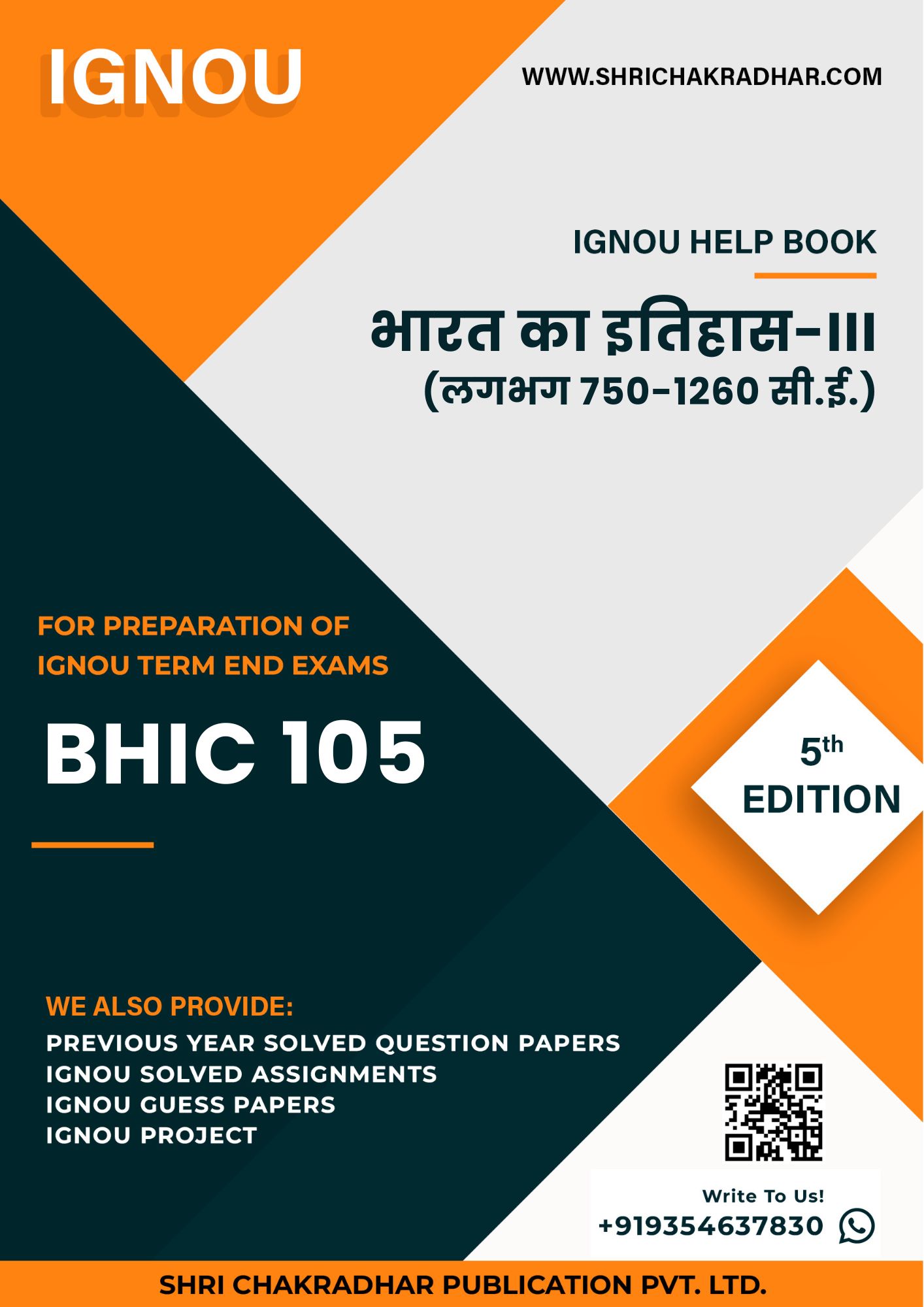 Are you looking for best quality IGNOU Reference Book or IGNOU HelpBook? Therefore, we created IGNOU BHIC 105 Study Notes with important questions and answer for your convenience. This is the perfect IGNOU BHIC 105 Guide Book for you in a descriptive way. You can get each and every detail in this book. Topics and important questions from each unit/block of IGNOU BHIC 105 Study Material are well explained in this book and the language of Book is easy for better understanding. Above all, buy this IGNOU Guide Book BHIC 105 Bharat ka itihaas-III (lagbhag 750-1260) from us and get best help for your coming examination/assignment.