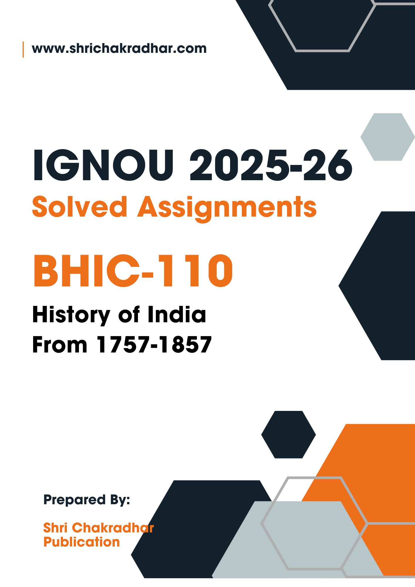 Are you looking for the best quality IGNOU Solved Assignment Pdf Booklet? We have created IGNOU BHIC 110 Solved Assignment with fully solved answers for your convenience. This descriptive IGNOU BHIC 110 Solved Assignment is perfect for students who wish to appear in the upcoming TEE Examination and want to submit it at their study centre. This IGNOU BHIC 110 Solved Assignment will save students time and provide all assignment answers. They explain the answers well and use easy language for better understanding. Above all, buy this BHIC 110Â History of India From 1757-1857 IGNOU Solved Assignment from IGNOU Study Material/Books and get the best help for your upcoming examination.