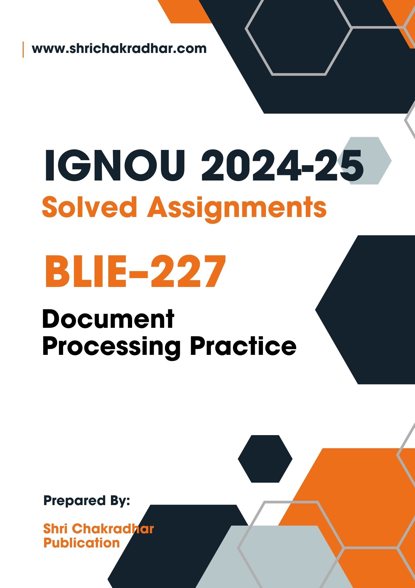 Are you looking for the best quality IGNOU Solved Assignment Pdf Booklet? We have created IGNOU BLIE 227 Solved Assignment with fully solved answers for your convenience. This descriptive IGNOU BLIE 227 Solved Assignment is perfect for students who wish to appear in the upcoming TEE Examination and want to submit it at their study centre. This IGNOU BLIE 227 Solved Assignment will save students time and provide all assignment answers. They explain the answers well and use easy language for better understanding. Above all, buy this BLIE 227 Document Processing: Practice IGNOU Solved Assignment from IGNOU Study Material/Books and get the best help for your upcoming examination.