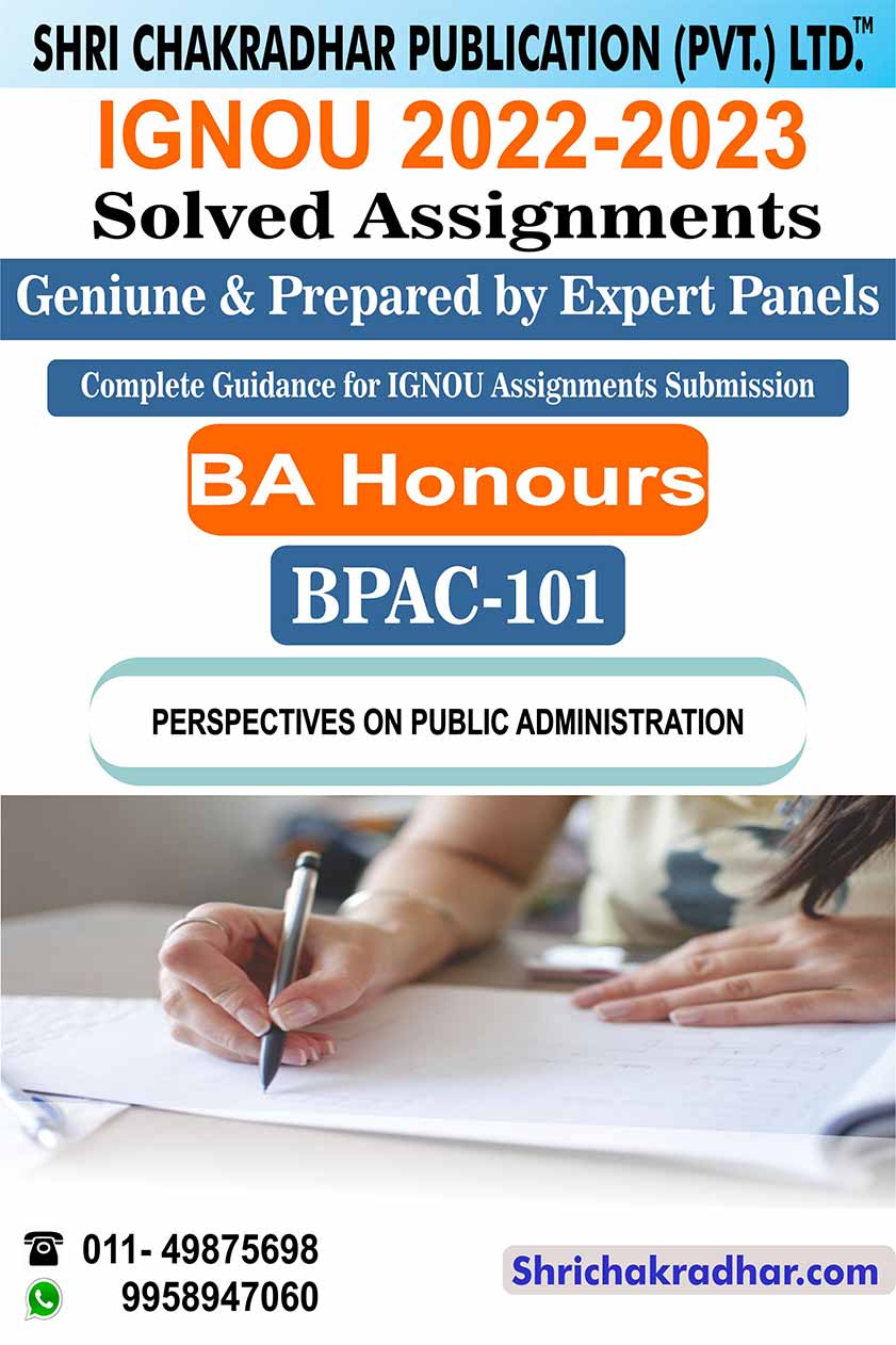 Are you looking for best quality IGNOU Solved Assignment Pdf Booklet? Therefore, we created IGNOU BPAC 101 Solved Assignment with fully solved answers for your convenience. This is the perfect IGNOU BPAC 101 Solved Assignment in a descriptive way for those students who wish to appear in upcoming TEE Examination and want to submit on their study centre. This IGNOU Solved Assignment BPAC 101 is time saving for the students and they will get each and every solutions of the questions asked in the assignment. Answers are well explained and language is easy for better understanding. Above all, buy this BPAC 101 Perspectives on Public Administration IGNOU Solved Assignment from IGNOU Study Material/Books and get best help for your coming examination.