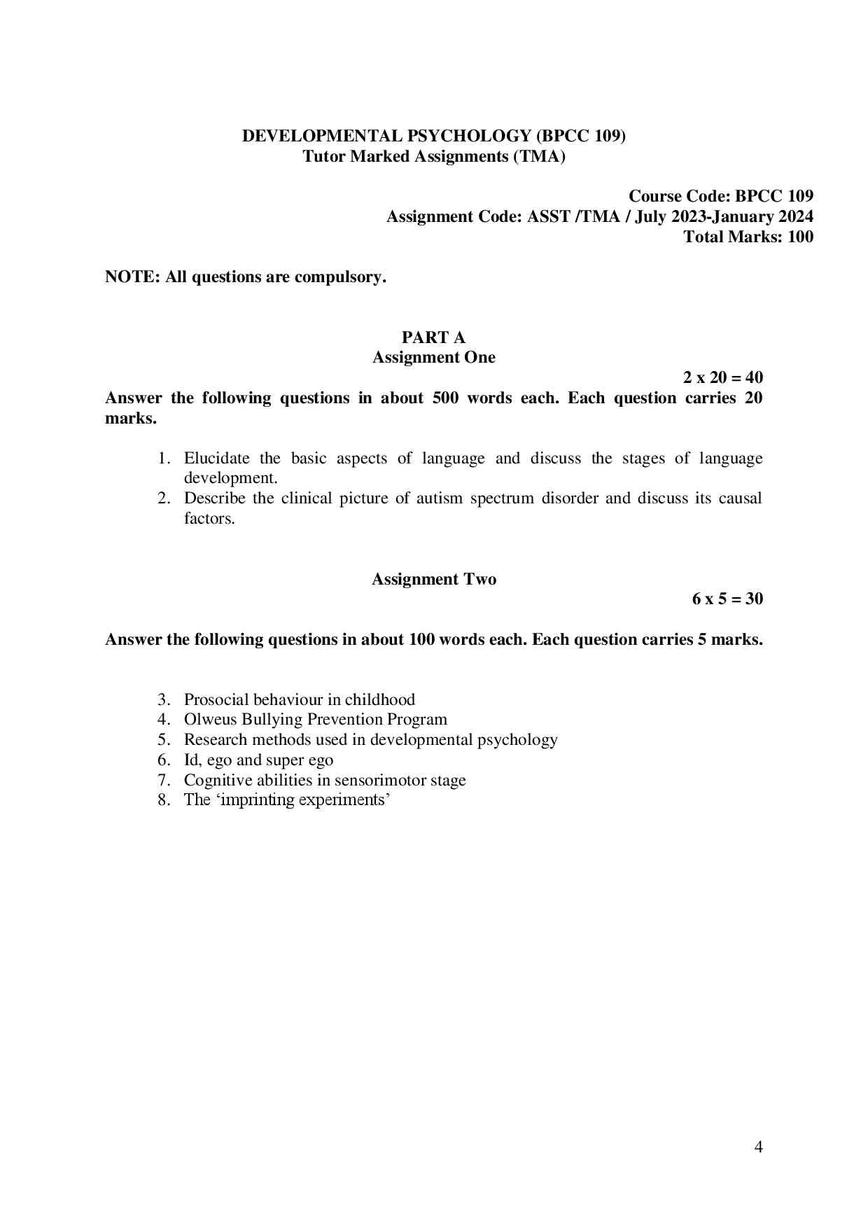 Are you looking for best quality IGNOU Solved Assignment Pdf Booklet? Therefore, we created IGNOU BPCC 109 Solved Assignment with fully solved answers for your convenience. This is the perfect IGNOU BPCC 109 Solved Assignment in a descriptive way for those students who wish to appear in upcoming TEE Examination and want to submit on their study centre. This IGNOU Solved Assignment BPCC 109 is time saving for the students and they will get each and every solutions of the questions asked in the assignment. Answers are well explained and language is easy for better understanding. Above all, buy this BPCC 109 Developmental Psychology IGNOU Solved Assignment from IGNOU Study Material/Books and get best help for your coming examination.