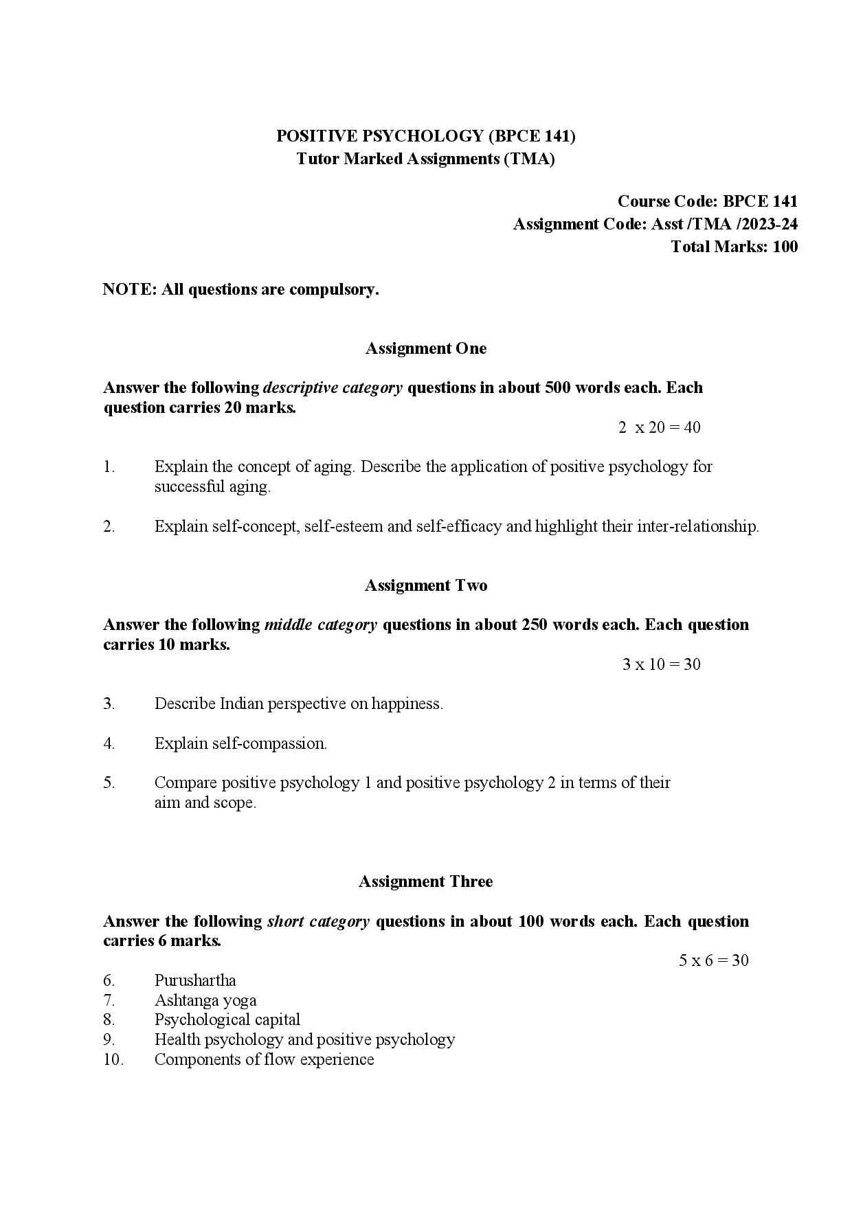 Are you looking for best quality IGNOU Solved Assignment Pdf Booklet? Therefore, we created IGNOU BPCE 141 Solved Assignment with fully solved answers for your convenience. This is the perfect IGNOU BPCE 141 Solved Assignment in a descriptive way for those students who wish to appear in upcoming TEE Examination and want to submit on their study centre. This IGNOU Solved Assignment BPCE 141 is time saving for the students and they will get each and every solutions of the questions asked in the assignment. Answers are well explained and language is easy for better understanding. Above all, buy this BPCE 141 Positive Psychology IGNOU Solved Assignment from IGNOU Study Material/Books and get best help for your coming examination.