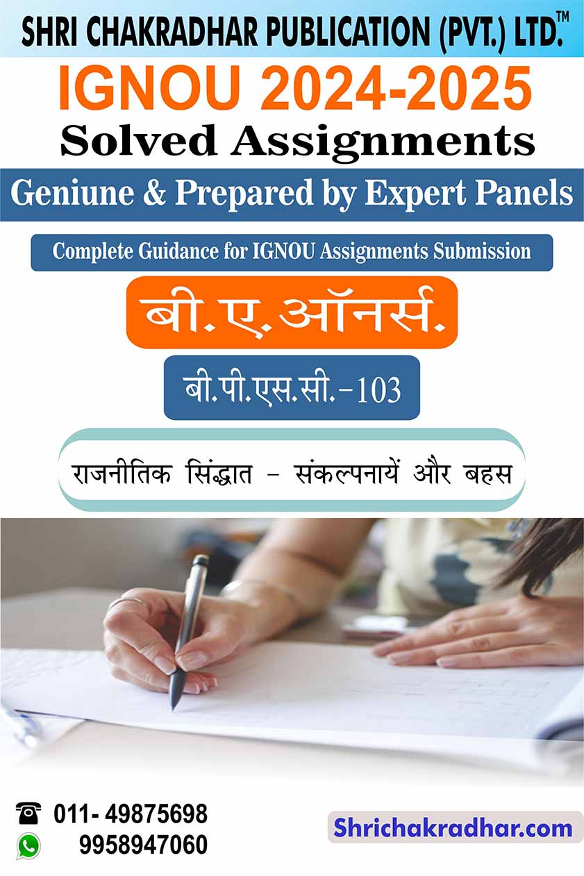 Are you looking for best quality IGNOU Solved Assignment Pdf Booklet? Therefore, we created IGNOU BPSC 103 Solved Assignment with fully solved answers for your convenience. This is the perfect IGNOU BPSC 103 Solved Assignment in a descriptive way for those students who wish to appear in upcoming TEE Examination and want to submit on their study centre. This IGNOU Solved Assignment BPSC 103 is time saving for the students and they will get each and every solutions of the questions asked in the assignment. Answers are well explained and language is easy for better understanding. Above all, buy this BPSC 103 Rajneetik Siddhant: Sankalpnayein Aur Behas IGNOU Study Material/Books and get best help for your coming examination.