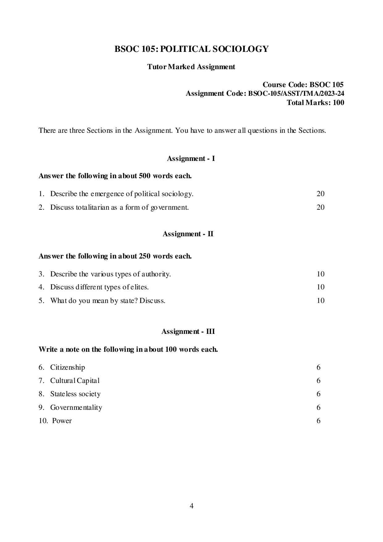 Are you looking for best quality IGNOU Solved Assignment Pdf Booklet? Therefore, we created IGNOU BSOC 105 Solved Assignment with fully solved answers for your convenience. This is the perfect IGNOU BSOC 105 Solved Assignment in a descriptive way for those students who wish to appear in upcoming TEE Examination and want to submit on their study centre. This IGNOU Solved Assignment BSOC 105 is time saving for the students and they will get each and every solutions of the questions asked in the assignment. Answers are well explained and language is easy for better understanding. Above all, buy this BSOC 105 Political Sociology IGNOU Solved Assignment from IGNOU Study Material/Books and get best help for your coming examination.
