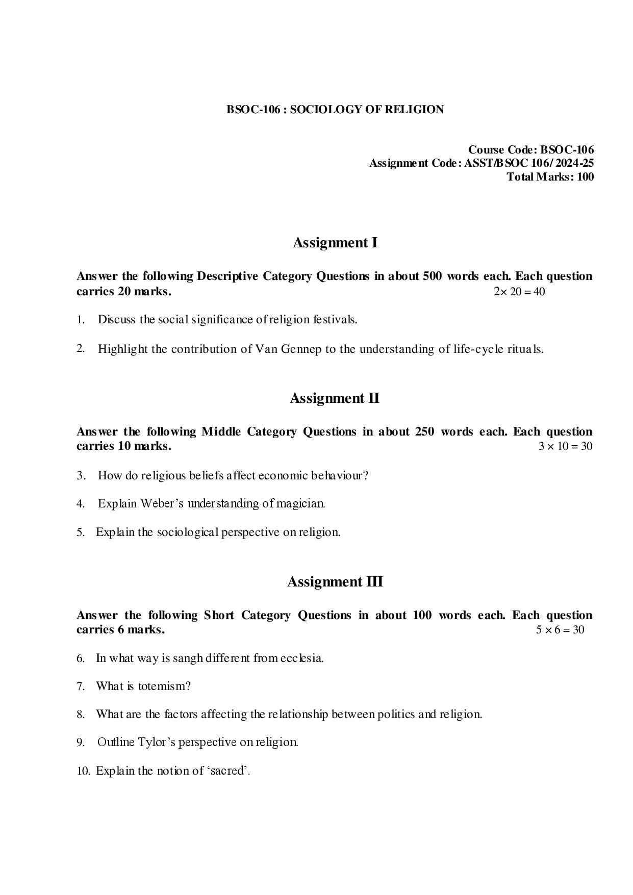 Are you looking for best quality IGNOU Solved Assignment Pdf Booklet? Therefore, we created IGNOU BSOC 106 Solved Assignment with fully solved answers for your convenience. This is the perfect IGNOU BSOC 106 Solved Assignment in a descriptive way for those students who wish to appear in upcoming TEE Examination and want to submit on their study centre. This IGNOU Solved Assignment BSOC 106 is time saving for the students and they will get each and every solutions of the questions asked in the assignment. Answers are well explained and language is easy for better understanding. Above all, buy this BSOC 106 Sociology of Religion from IGNOU Study Material/Books and get best help for your coming examination.