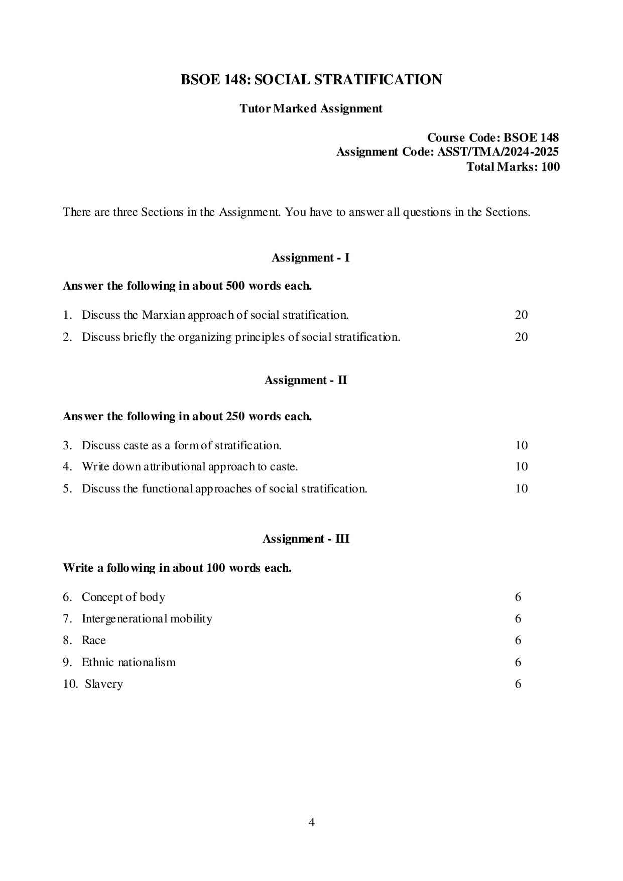 Are you looking for best quality IGNOU Solved Assignment Pdf Booklet? Therefore, we created IGNOU BSOE 148 Solved Assignment with fully solved answers for your convenience. This is the perfect IGNOU BSOE 148 Solved Assignment in a descriptive way for those students who wish to appear in upcoming TEE Examination and want to submit on their study centre. This IGNOU Solved Assignment BSOE 148 is time saving for the students and they will get each and every solutions of the questions asked in the assignment. Answers are well explained and language is easy for better understanding. Above all, buy this BSOE 148 Social Startification from IGNOU Study Material/Books and get best help for your coming examination.
