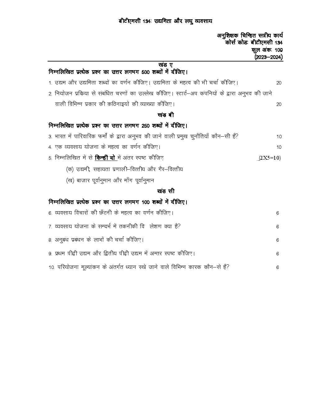 Are you looking for best quality IGNOU Solved Assignment Pdf Booklet? Therefore, we created IGNOU BTMC 134 Solved Assignment with fully solved answers for your convenience. This is the perfect IGNOU BTMC 134 Solved Assignment in a descriptive way for those students who wish to appear in upcoming TEE Examination and want to submit on their study centre. This IGNOU Solved Assignment BTMC 134 is time saving for the students and they will get each and every solutions of the questions asked in the assignment. Answers are well explained and language is easy for better understanding. Above all, buy this BTMC 134 Udaymita Aur Laghu Vyavsaye Solved Assignment from IGNOU Study Material/Books and get best help for your coming examination.