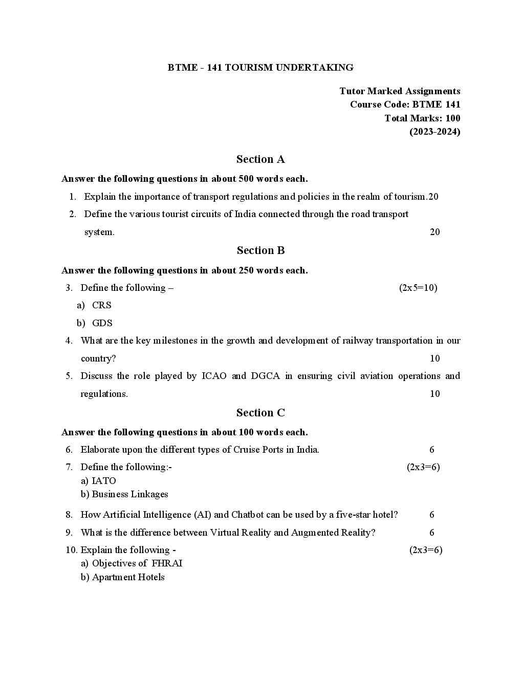 Are you looking for best quality IGNOU Solved Assignment Pdf Booklet? Therefore, we created IGNOU BTME 141 Solved Assignment with fully solved answers for your convenience. This is the perfect IGNOU BTME 141 Solved Assignment in a descriptive way for those students who wish to appear in upcoming TEE Examination and want to submit on their study centre. This IGNOU Solved Assignment BTME 141 is time saving for the students and they will get each and every solutions of the questions asked in the assignment. Answers are well explained and language is easy for better understanding. Above all, buy this BTME 141 Tourism Undertaking Solved Assignment from IGNOU Study Material/Books and get best help for your coming examination.