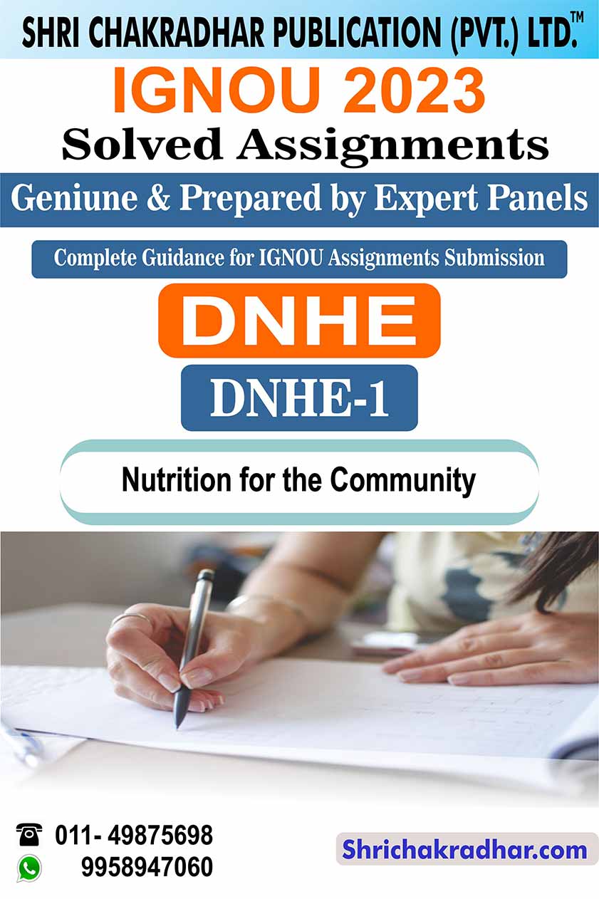 Are you looking for best quality IGNOU Solved Assignment Pdf Booklet? Therefore, we created IGNOU DNHE 1 Solved Assignment with fully solved answers for your convenience. This is the perfect IGNOU DNHE 1 Solved Assignment in a descriptive way for those students who wish to appear in upcoming TEE Examination and want to submit on their study centre. This IGNOU Solved Assignment DNHE 1 is time saving for the students and they will get each and every solutions of the questions asked in the assignment. Answers are well explained and language is easy for better understanding. Above all, buy this DNHE 1 Nutrition for the Community IGNOU Solved Assignment from IGNOU Study Material/Books and get best help for your coming examination.