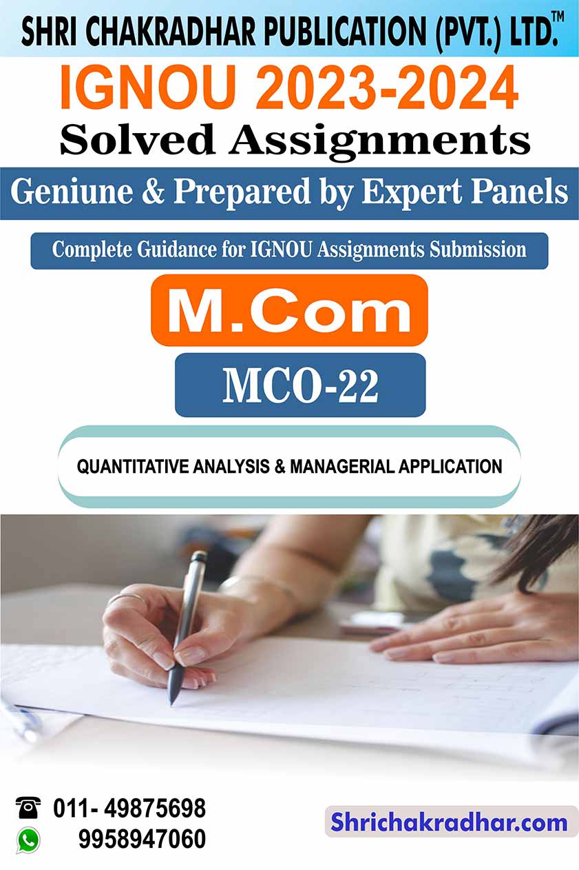 Are you looking for best quality IGNOU Solved Assignment Pdf Booklet? Therefore, we created IGNOU MCO 22 Solved Assignment with fully solved answers for your convenience. This is the perfect IGNOU MCO 22 Solved Assignment in a descriptive way for those students who wish to appear in upcoming TEE Examination and want to submit on their study centre. This IGNOU Solved Assignment MCO 22 is time saving for the students and they will get each and every solutions of the questions asked in the assignment. Answers are well explained and language is easy for better understanding. Above all, buy this MCO 22 Quantitative Analysis and Managerial Application IGNOU Solved Assignment from IGNOU Study Material/Books and get best help for your coming examination.