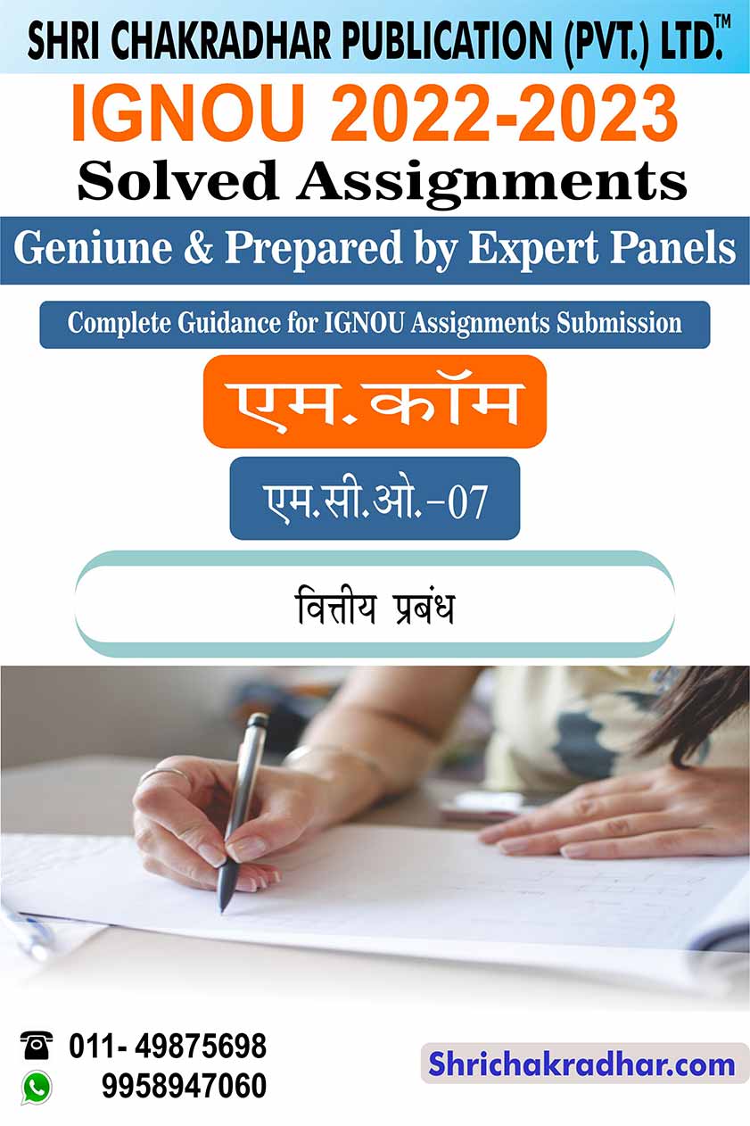 Are you looking for best quality IGNOU Solved Assignment Pdf Booklet? Therefore, we created IGNOU MCO 7 Solved Assignment with fully solved answers for your convenience. This is the perfect IGNOU MCO 7 Solved Assignment in a descriptive way for those students who wish to appear in upcoming TEE Examination and want to submit on their study centre. This IGNOU Solved Assignment MCO 7 is time saving for the students and they will get each and every solutions of the questions asked in the assignment. Answers are well explained and language is easy for better understanding. Above all, buy this MCO 7 Vittiya Prabandhan IGNOU Solved Assignment from IGNOU Study Material/Books and get best help for your coming examination.