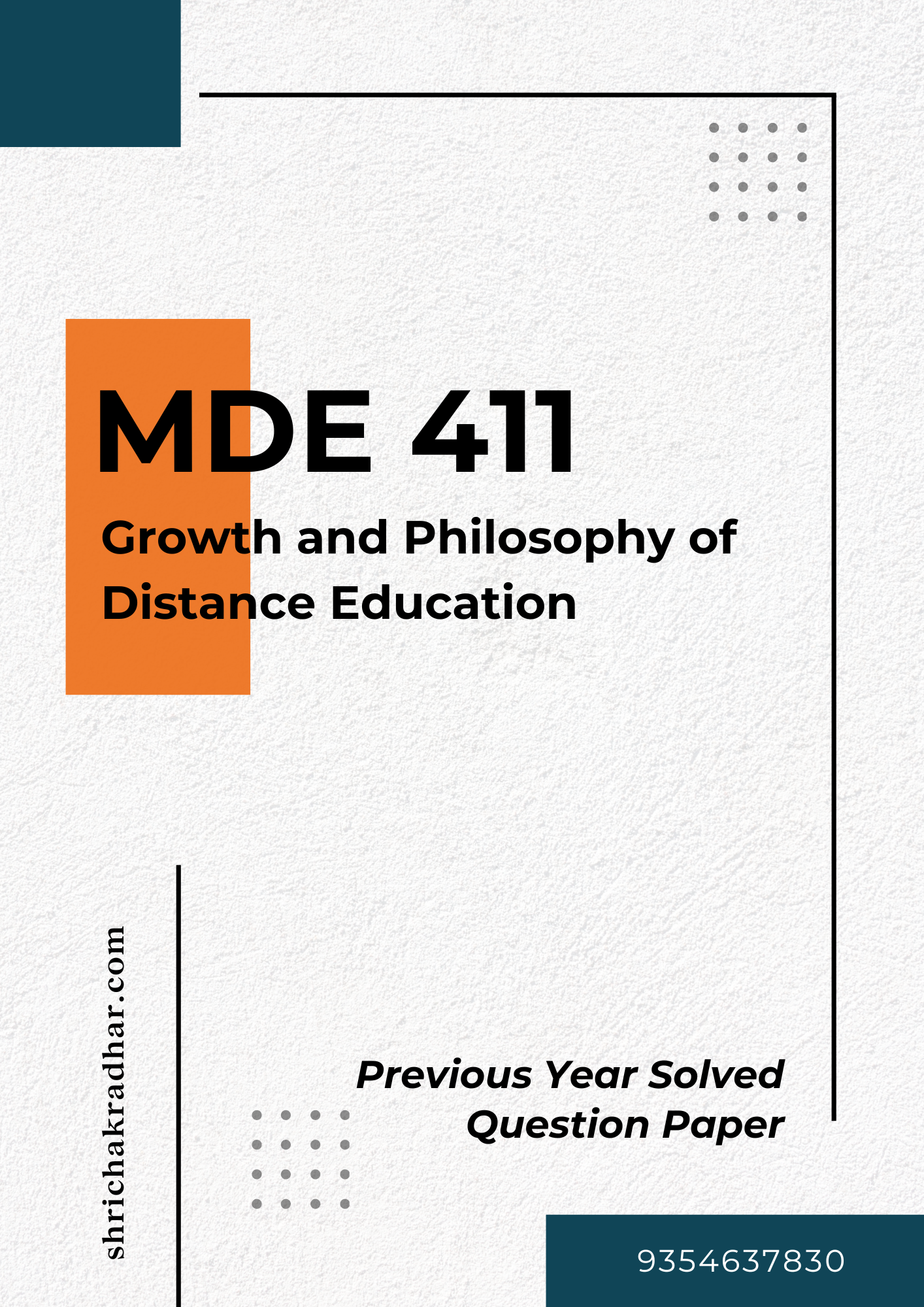 Are you looking for best quality IGNOU Solved Question Papers Pdf Booklet? We created IGNOU MDE 411 Previous Years Solved Papers with fully solved answers for your convenience. Here is the perfect IGNOU MDE 411 Solved Question Papers in a descriptive way for those students who wish to pass out their upcoming IGNOU Term End Examination. These Previous Years Question Papers solutions are time saving for the students because they will get each solutions of the questions asked in the IGNOU MDE 411 question paper. Answers are well explained and language is easy for better understanding. Above all, buy this IGNOU MDE 411 Previous Years Question Papers Solutions from IGNOU Study Material/Books and get best help for your coming examination.