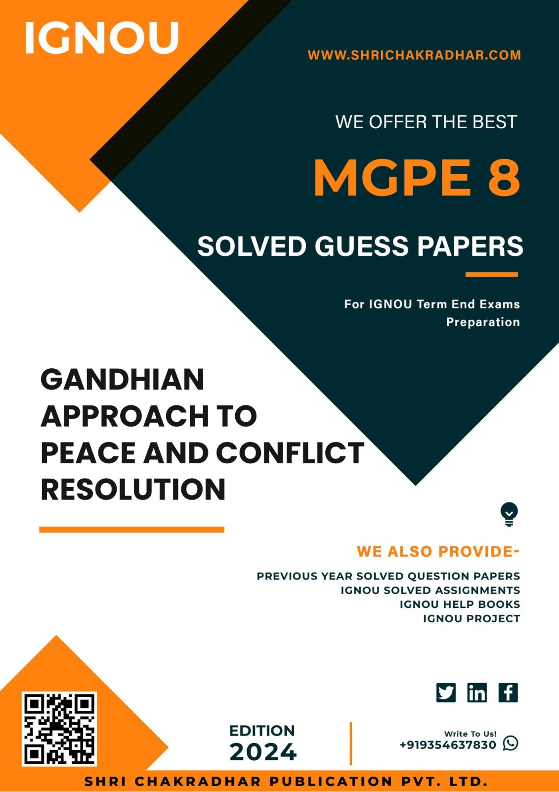 Are you looking for best quality IGNOU Solved Guess Papers Pdf Booklet & IGNOU Important Question Answers? We created IGNOU MGPE 8 Solved Guess Papers with fully solved answers for your convenience. Here is the perfect IGNOU MGPE 8 Important Question Answers in a descriptive way for those students who wish to pass out their upcoming IGNOU Term End Examination. These Solved Guess Papers solutions are time saving for the students because they will get each solutions of the expected questions shall be asked in the IGNOU MGPE 8 question paper. Answers are well explained and language is easy for better understanding. Above all, buy this IGNOU MGPE 8 Solved Guess Papers Solutions Gandhi Approach to Peace and Conflict Resolutions from our Guides/Reference Book and get best help for your coming examination.