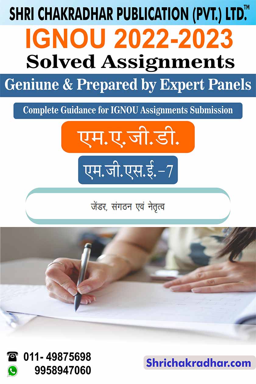 Are you looking for best quality IGNOU Solved Assignment Pdf Booklet? Therefore, we created IGNOU MGSE 7 Solved Assignment with fully solved answers for your convenience. This is the perfect IGNOU MGSE 7 Solved Assignment in a descriptive way for those students who wish to appear in upcoming TEE Examination and want to submit on their study centre. This IGNOU Solved Assignment MGSE 7 is time saving for the students and they will get each and every solutions of the questions asked in the assignment. Answers are well explained and language is easy for better understanding. Above all, buy this MGSE 7 Gender Sangathan evam Netratva IGNOU Solved Assignment from IGNOU Study Material/Books and get best help for your coming examination.
