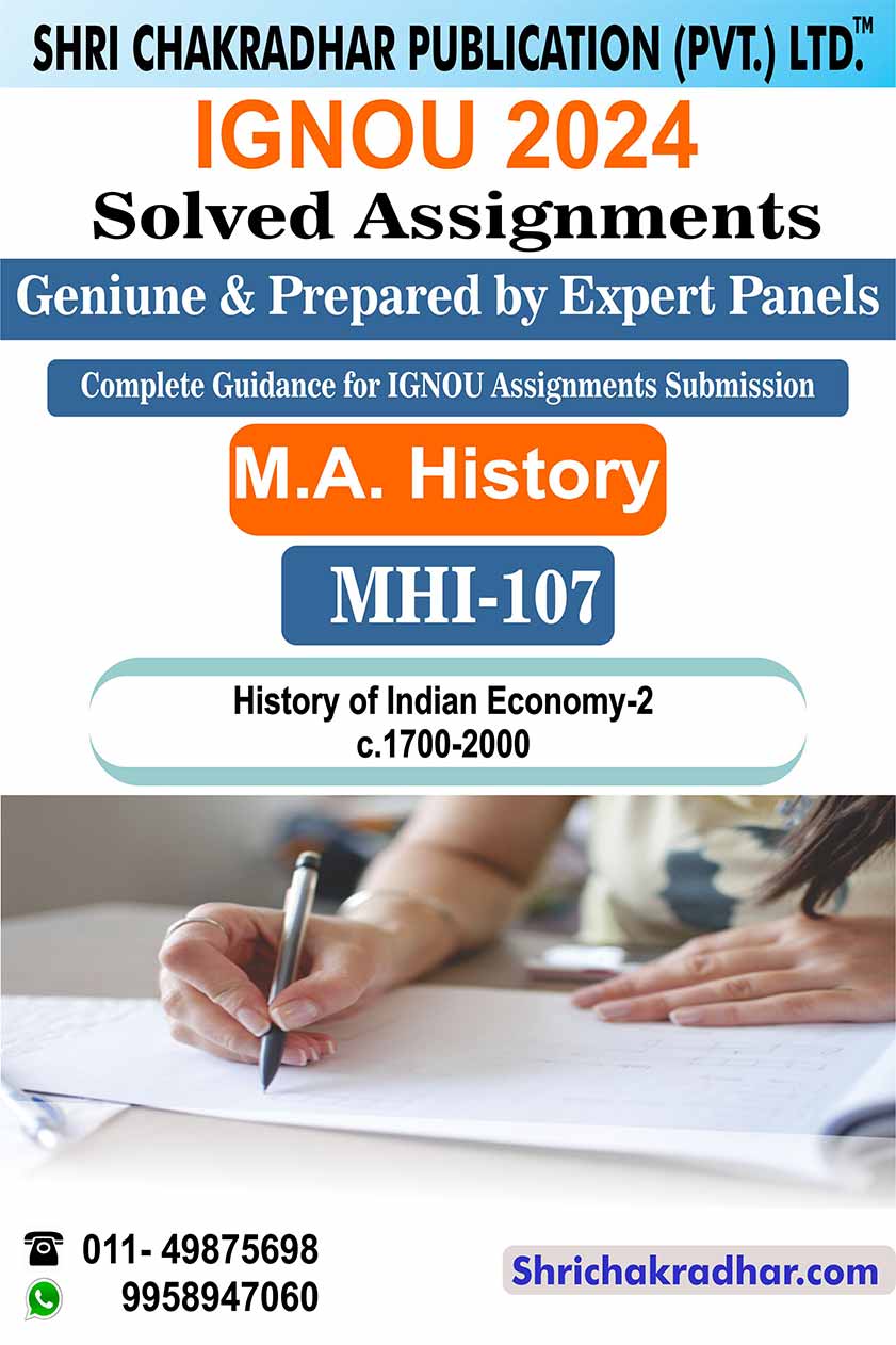 Are you looking for best quality IGNOU Solved Assignment Pdf Booklet? Therefore, we created IGNOU MHI 107 Solved Assignment with fully solved answers for your convenience. This is the perfect IGNOU MHI 107 Solved Assignment in a descriptive way for those students who wish to appear in upcoming TEE Examination and want to submit on their study centre. This IGNOU Solved Assignment MHI 107 is time saving for the students and they will get each and every solutions of the questions asked in the assignment. Answers are well explained and language is easy for better understanding. Above all, buy this MHI 107 History of Indian Economy-2 c. 1700-2000 Solved Assignment from IGNOU Study Material/Books and get best help for your coming examination.