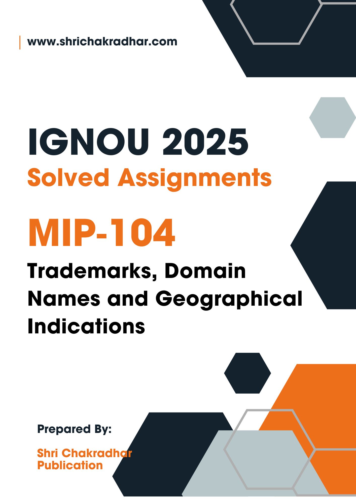 Are you looking for the best quality IGNOU Solved Assignment Pdf Booklet? We have created IGNOU MIP 104 Solved Assignment with fully solved answers for your convenience. This descriptive IGNOU MIP 104 Solved Assignment is perfect for students who wish to appear in the upcoming TEE Examination and want to submit it at their study centre. This IGNOU MIP 104 Solved Assignment will save students time and provide all assignment answers. They explain the answers well and use easy language for better understanding. Above all, buy this MIP 104 Trademarks, Domain Names, Geographical Indications IGNOU Solved Assignment from IGNOU Study Material/Books and get the best help for your upcoming examination.
