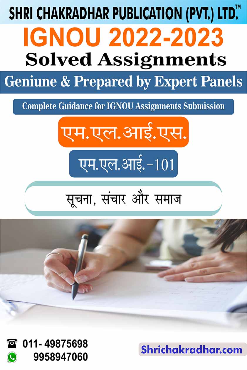 Are you looking for best quality IGNOU Solved Assignment PDF Booklet? Therefore, we created IGNOU MLI 101 Solved Assignment with fully solved answers for your convenience. This is the perfect IGNOU MLI 101 Solved Assignment in a descriptive way for those students who wish to appear in upcoming TEE Examination and want to submit on their study centre. This IGNOU Solved Assignment MLI 101 is time saving for the students and they will get each and every solutions of the questions asked in the assignment. Answers are well explained and language is easy for better understanding. Above all, buy this MLI 101 Suchana, Sanchar aur Samaaj IGNOU Solved Assignment from IGNOU Study Material/Books and get best help for your coming examination.