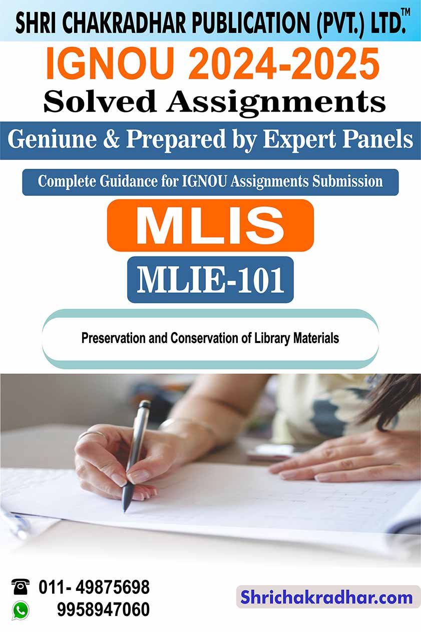 Are you looking for best quality IGNOU Solved Assignment Pdf Booklet? Therefore, we created IGNOU MLIE 101 Solved Assignment with fully solved answers for your convenience. This is the perfect IGNOU MLIE 101 Solved Assignment in a descriptive way for those students who wish to appear in upcoming TEE Examination and want to submit on their study centre. This IGNOU Solved Assignment MLIE 101 is time saving for the students and they will get each and every solutions of the questions asked in the assignment. Answers are well explained and language is easy for better understanding. Above all, buy this MLIE 101 Preservation And Conservation of Library Material Material/Books and get best help for your coming examination.