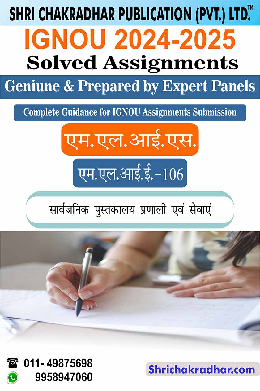 Are you looking for best quality IGNOU Solved Assignment Pdf Booklet? Therefore, we created IGNOU MLIE 106 Solved Assignment with fully solved answers for your convenience. This is the perfect IGNOU MLIE 106 Solved Assignment in a descriptive way for those students who wish to appear in upcoming TEE Examination and want to submit on their study centre. This IGNOU Solved Assignment MLIE 106 is time saving for the students and they will get each and every solutions of the questions asked in the assignment. Answers are well explained and language is easy for better understanding. Above all, buy this MLIE 106 Sarvajanik Pustkalya Pranali Evam Sewayein IGNOU Study Material/Books and get best help for your coming examination.
