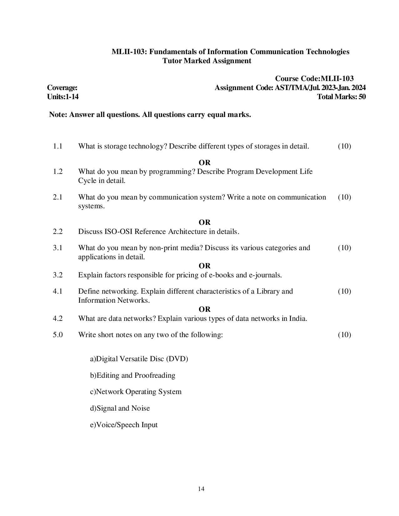 Are you looking for best quality IGNOU Solved Assignment Pdf Booklet? Therefore, we created IGNOU MLII 103 Solved Assignment with fully solved answers for your convenience. This is the perfect IGNOU MLII 103 Solved Assignment in a descriptive way for those students who wish to appear in upcoming TEE Examination and want to submit on their study centre. This IGNOU Solved Assignment MLII 103 is time saving for the students and they will get each and every solutions of the questions asked in the assignment. Answers are well explained and language is easy for better understanding. Above all, buy this MLII 103 Fundamentals of Information Communication Technologies IGNOU Solved Assignment from IGNOU Study Material/Books and get best help for your coming examination.