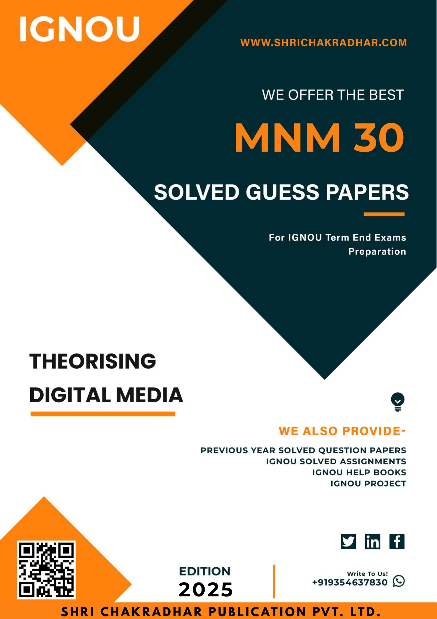 Are you looking for best quality IGNOU Solved Guess Papers Pdf Booklet & IGNOU Important Question Answers? We created IGNOU MNM 30 Solved Guess Papers with fully solved answers for your convenience. Here is the perfect IGNOU MNM 30 Important Question Answers in a descriptive way for those students who wish to pass out their upcoming IGNOU Term End Examination. These Solved Guess Papers solutions are time saving for the students because they will get each solutions of the expected questions shall be asked in the IGNOU MNM 30 question paper. Answers are well explained and language is easy for better understanding. Above all, buy this IGNOU MNM 30 Solved Guess Papers Solutions Theorising Digital Media Guides/Reference Book and get best help for your coming examination.