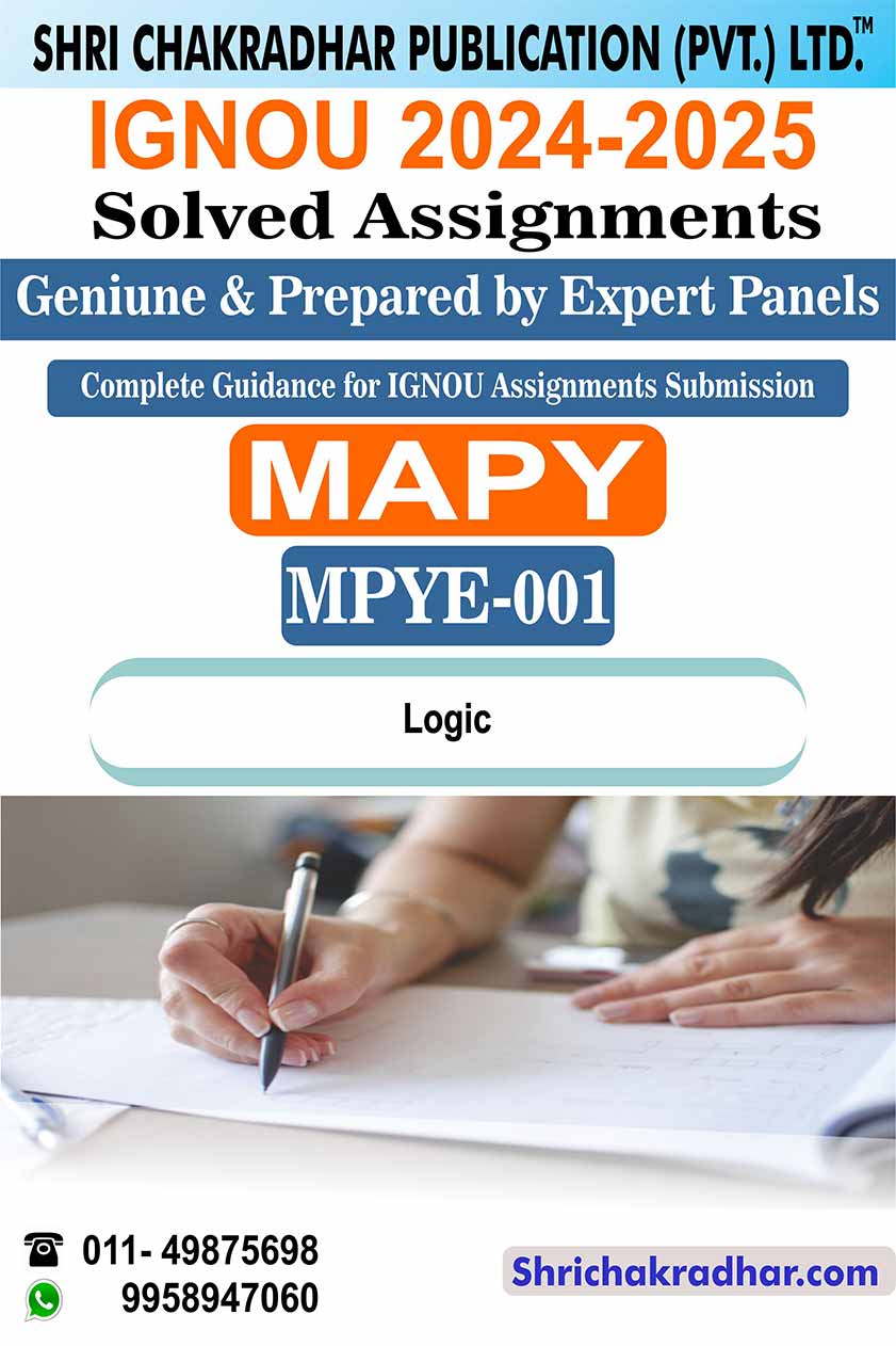 Are you looking for best quality IGNOU Solved Assignment Pdf Booklet? Therefore, we created IGNOU MPYE 1 Solved Assignment with fully solved answers for your convenience. This is the perfect IGNOU MPYE 1 Solved Assignment in a descriptive way for those students who wish to appear in upcoming TEE Examination and want to submit on their study centre. This IGNOU Solved Assignment MPYE 1 is time saving for the students and they will get each and every solutions of the questions asked in the assignment. Answers are well explained and language is easy for better understanding. Above all, buy this MPYE 1 Logic Study Material/Books and get best help for your coming examination.