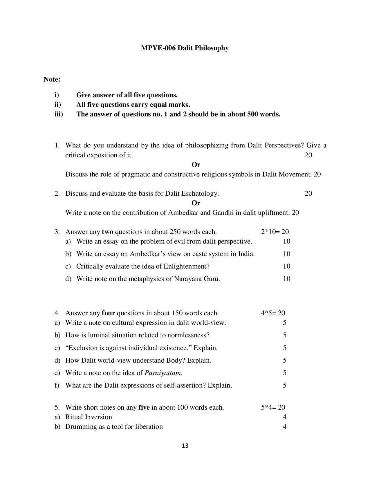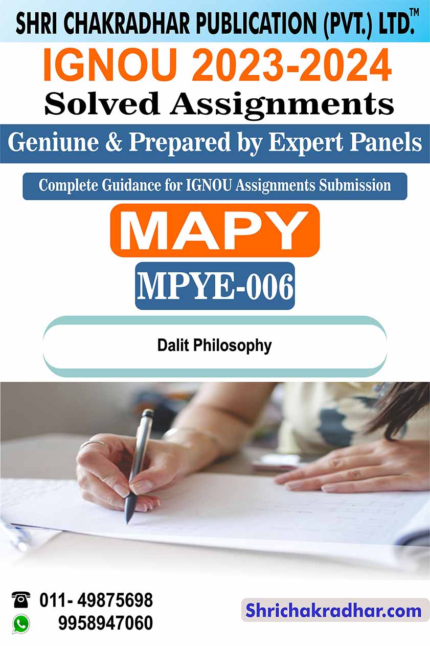 Are you looking for best quality IGNOU Solved Assignment Pdf Booklet? Therefore, we created IGNOU MPYE 6 Solved Assignment with fully solved answers for your convenience. This is the perfect IGNOU MPYE 6 Solved Assignment in a descriptive way for those students who wish to appear in upcoming TEE Examination and want to submit on their study centre. This IGNOU Solved Assignment MPYE 6 is time saving for the students and they will get each and every solutions of the questions asked in the assignment. Answers are well explained and language is easy for better understanding. Above all, buy this MPYE 6 Dalit Philosophy IGNOU Solved Assignment from IGNOU Study Material/Books and get best help for your coming examination.