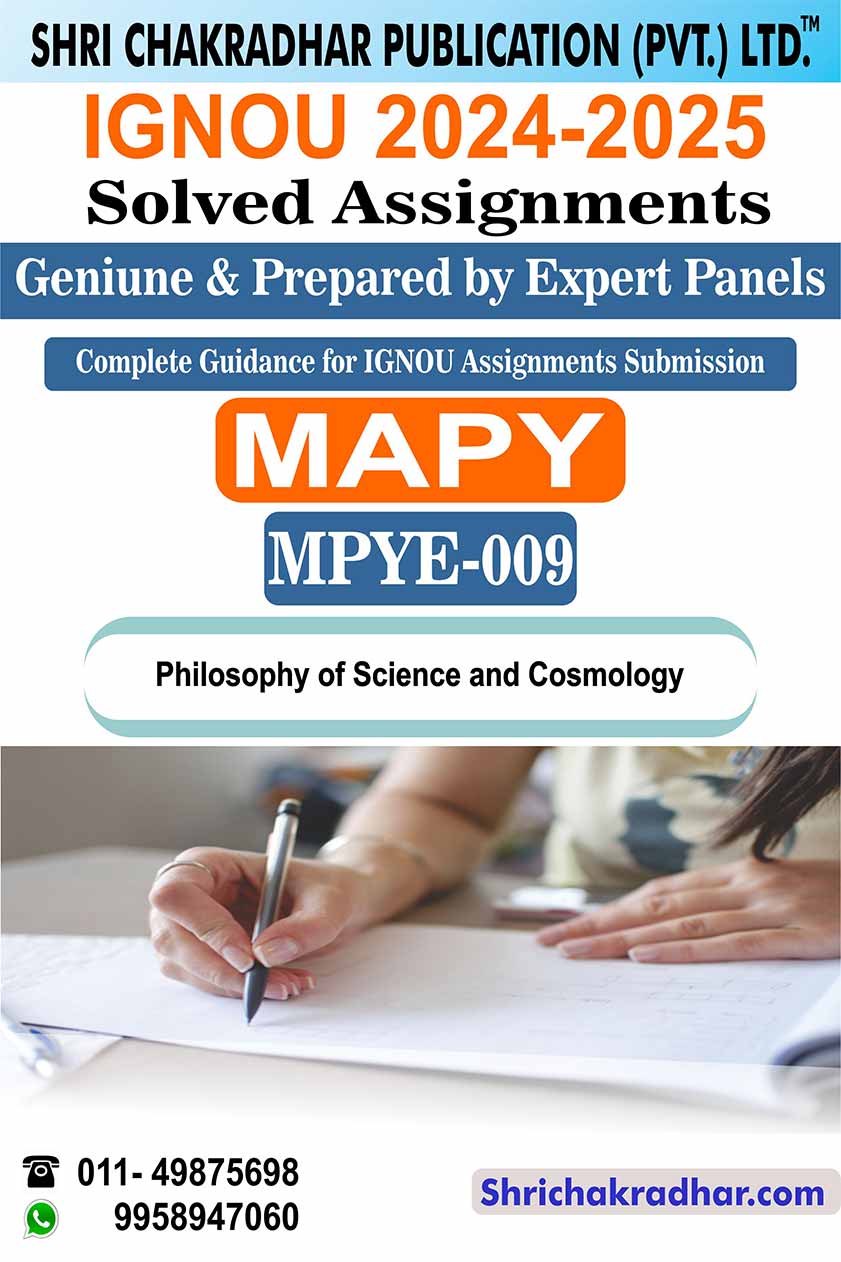 Are you looking for best quality IGNOU Solved Assignment Pdf Booklet? Therefore, we created IGNOU MPYE 9 Solved Assignment with fully solved answers for your convenience. This is the perfect IGNOU MPYE 9 Solved Assignment in a descriptive way for those students who wish to appear in upcoming TEE Examination and want to submit on their study centre. This IGNOU Solved Assignment MPYE 9 is time saving for the students and they will get each and every solutions of the questions asked in the assignment. Answers are well explained and language is easy for better understanding. Above all, buy this MPYE 9 Philosophy of Science and Cosmology Study Material/Books and get best help for your coming examination.