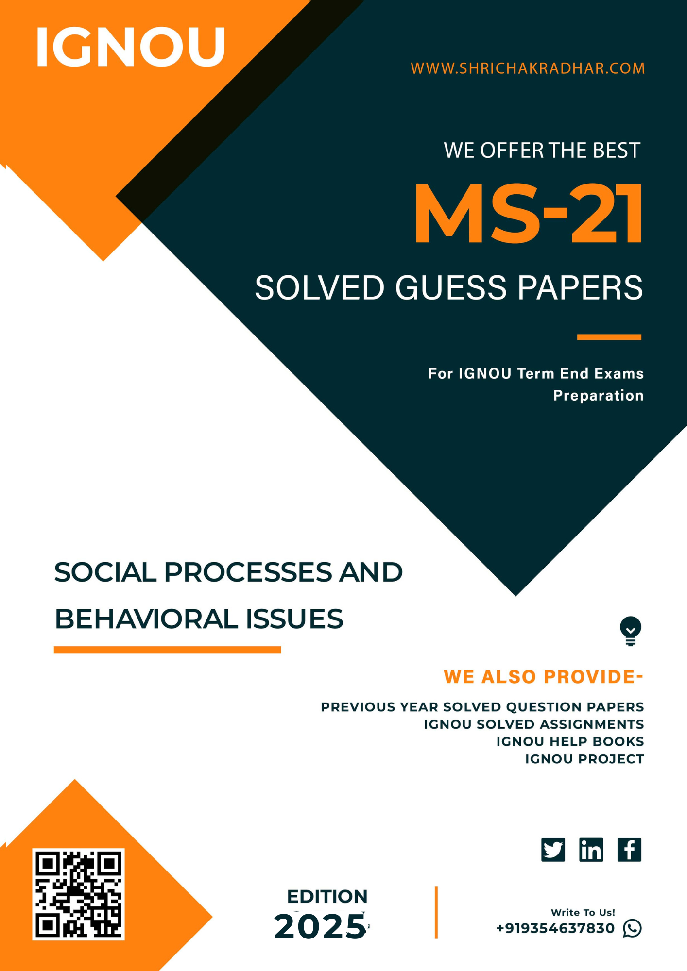 Are you looking for best quality IGNOU Solved Guess Papers Pdf Booklet & IGNOU Important Question Answers? We created IGNOU MS 21 Solved Guess Papers with fully solved answers for your convenience. Here is the perfect IGNOU MS 21 Important Question Answers in a descriptive way for those students who wish to pass out their upcoming IGNOU Term End Examination. These Solved Guess Papers solutions are time saving for the students because they will get each solutions of the expected questions shall be asked in the IGNOU MS 21 question paper. Answers are well explained and language is easy for better understanding. Above all, buy this IGNOU MS 21 Solved Guess Papers Solutions Social Processes and Behavioural Issues from our Guides/Reference Book and get best help for your coming examination.