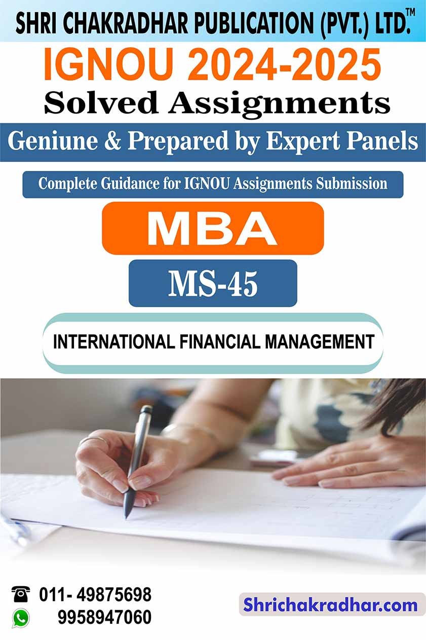 Are you looking for best quality IGNOU Solved Assignment Pdf Booklet? Therefore, we created IGNOU MS 45 Solved Assignment with fully solved answers for your convenience. This is the perfect IGNOU MS 45 Solved Assignment in a descriptive way for those students who wish to appear in upcoming TEE Examination and want to submit on their study centre. This IGNOU Solved Assignment MS 45 is time saving for the students and they will get each and every solutions of the questions asked in the assignment. Answers are well explained and language is easy for better understanding. Above all, buy this MS 45 International Financial Management IGNOU Solved Assignment from IGNOU Study Material/Books and get best help for your coming examination.