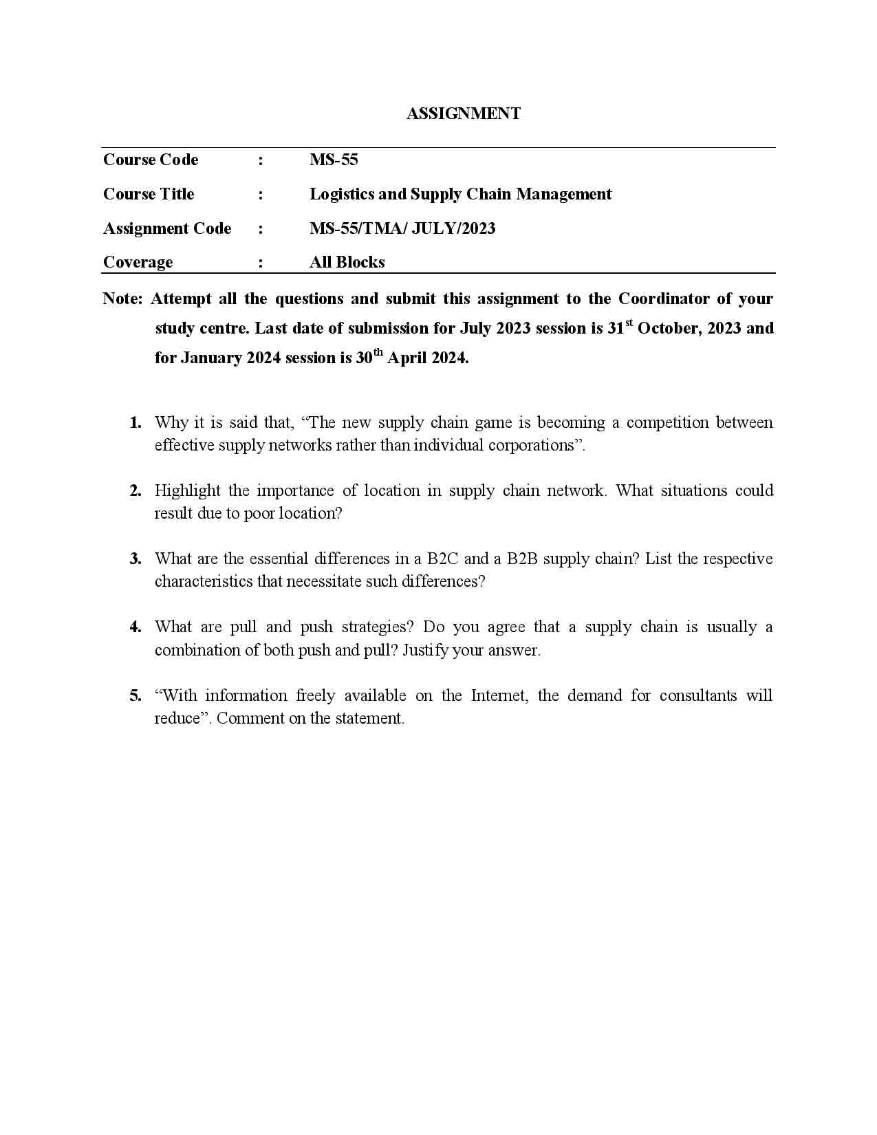 Are you looking for best quality IGNOU Solved Assignment Pdf Booklet? Therefore, we created IGNOU MS 55 Solved Assignment with fully solved answers for your convenience. This is the perfect IGNOU MS 55 Solved Assignment in a descriptive way for those students who wish to appear in upcoming TEE Examination and want to submit on their study centre. This IGNOU Solved Assignment MS 55 is time saving for the students and they will get each and every solutions of the questions asked in the assignment. Answers are well explained and language is easy for better understanding. Above all, buy this MS 55 Logistics and Supply Chain Management IGNOU Solved Assignment from IGNOU Study Material/Books and get best help for your coming examination.