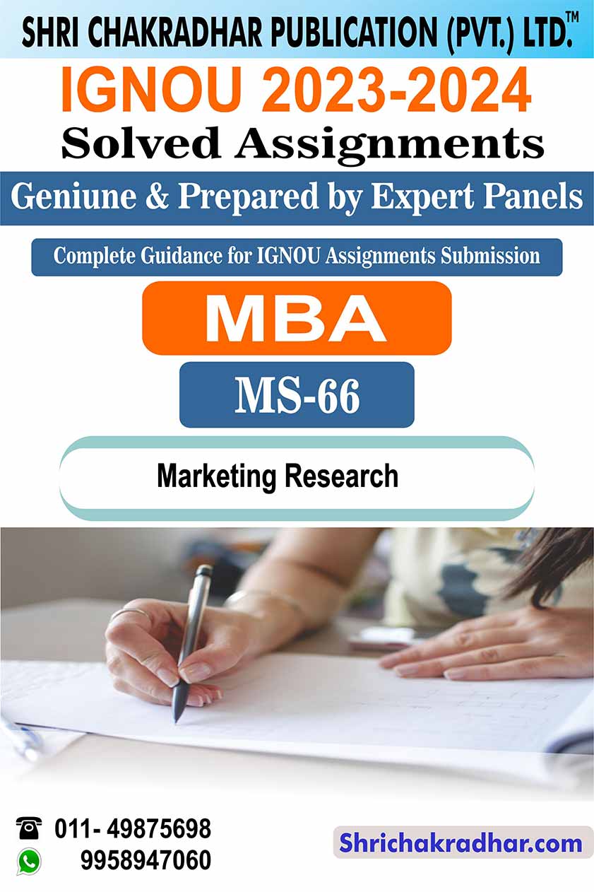 Are you looking for best quality IGNOU Solved Assignment Pdf Booklet? Therefore, we created IGNOU MS 66 Solved Assignment with fully solved answers for your convenience. This is the perfect IGNOU MS 66 Solved Assignment in a descriptive way for those students who wish to appear in upcoming TEE Examination and want to submit on their study centre. This IGNOU Solved Assignment MS 66 is time saving for the students and they will get each and every solutions of the questions asked in the assignment. Answers are well explained and language is easy for better understanding. Above all, buy this MS 66 Marketing Research IGNOU Solved Assignment from IGNOU Study Material/Books and get best help for your coming examination.