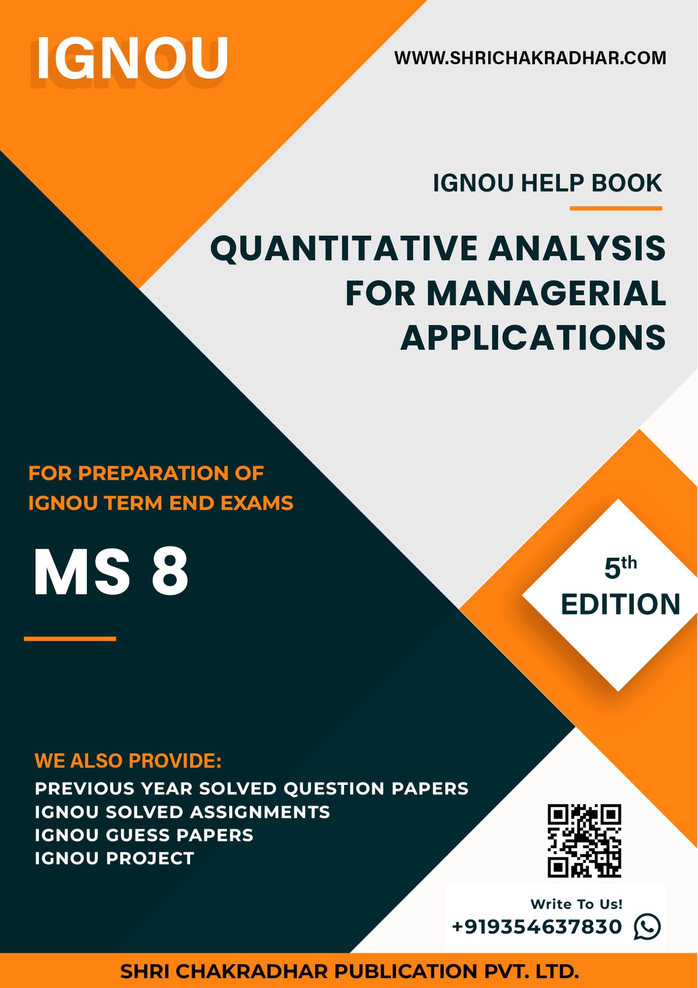 Are you looking for best quality IGNOU Reference Book or IGNOU HelpBook? Therefore, we created IGNOU MS 8 Study Notes with important questions and answer for your convenience. This is the perfect IGNOU MS 8 Guide Book for you in a descriptive way. You can get each and every detail in this book. Topics and important questions from each unit/block of IGNOU MS 8 Study Material are well explained in this book and the language of Book is easy for better understanding. Above all, buy this IGNOU Guide Book MS 8 Quantitative Analysis for Managerial Applications from us and get best help for your coming examination/assignment.