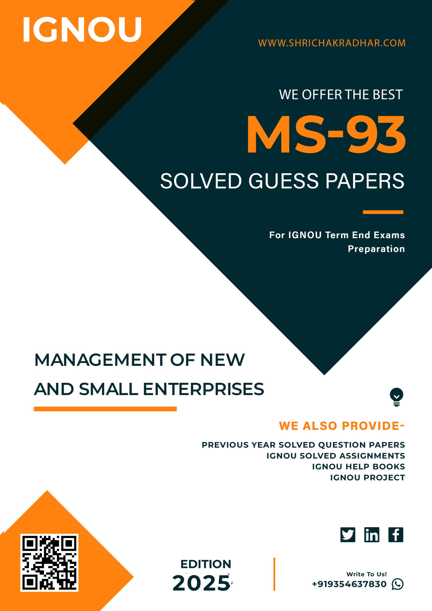 Are you looking for best quality IGNOU Solved Guess Papers Pdf Booklet & IGNOU Important Question Answers? We created IGNOU MS 93 Solved Guess Papers with fully solved answers for your convenience. Here is the perfect IGNOU MS 93 Important Question Answers in a descriptive way for those students who wish to pass out their upcoming IGNOU Term End Examination. These Solved Guess Papers solutions are time saving for the students because they will get each solutions of the expected questions shall be asked in the IGNOU MS 93 question paper. Answers are well explained and language is easy for better understanding. Above all, buy this IGNOU MS 93 Solved Guess Papers Solutions Management of New and Small Enterprises from our Guides/Reference Book and get best help for your coming examination.
