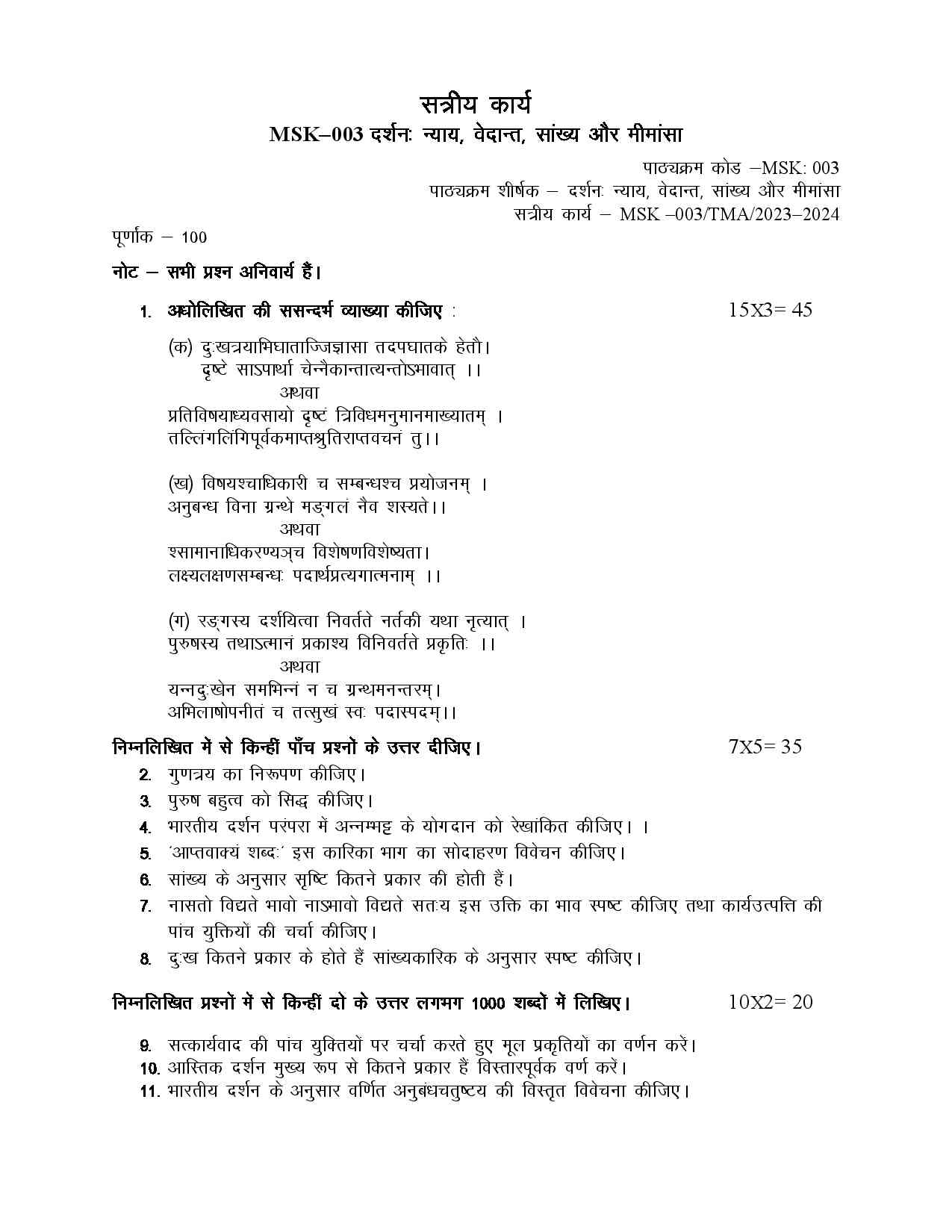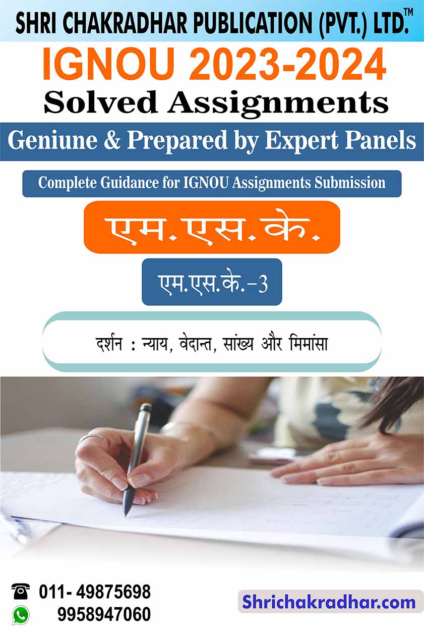 Are you looking for best quality IGNOU Solved Assignment Pdf Booklet? Therefore, we created IGNOU MSK 3 Solved Assignment with fully solved answers for your convenience. This is the perfect IGNOU MSK 3 Solved Assignment in a descriptive way for those students who wish to appear in upcoming TEE Examination and want to submit on their study centre. This IGNOU Solved Assignment MSK 3 is time saving for the students and they will get each and every solutions of the questions asked in the assignment. Answers are well explained and language is easy for better understanding. Above all, buy this MSK 3 Darshan: Niyay, Vedant, Sankhya Aur Mimansa Assignment from IGNOU Study Material/Books and get best help for your coming examination.