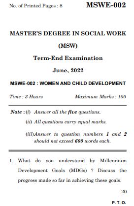 IGNOU MSWE 2 Previous Years Solved Question Papers (June 2022) (MSW)