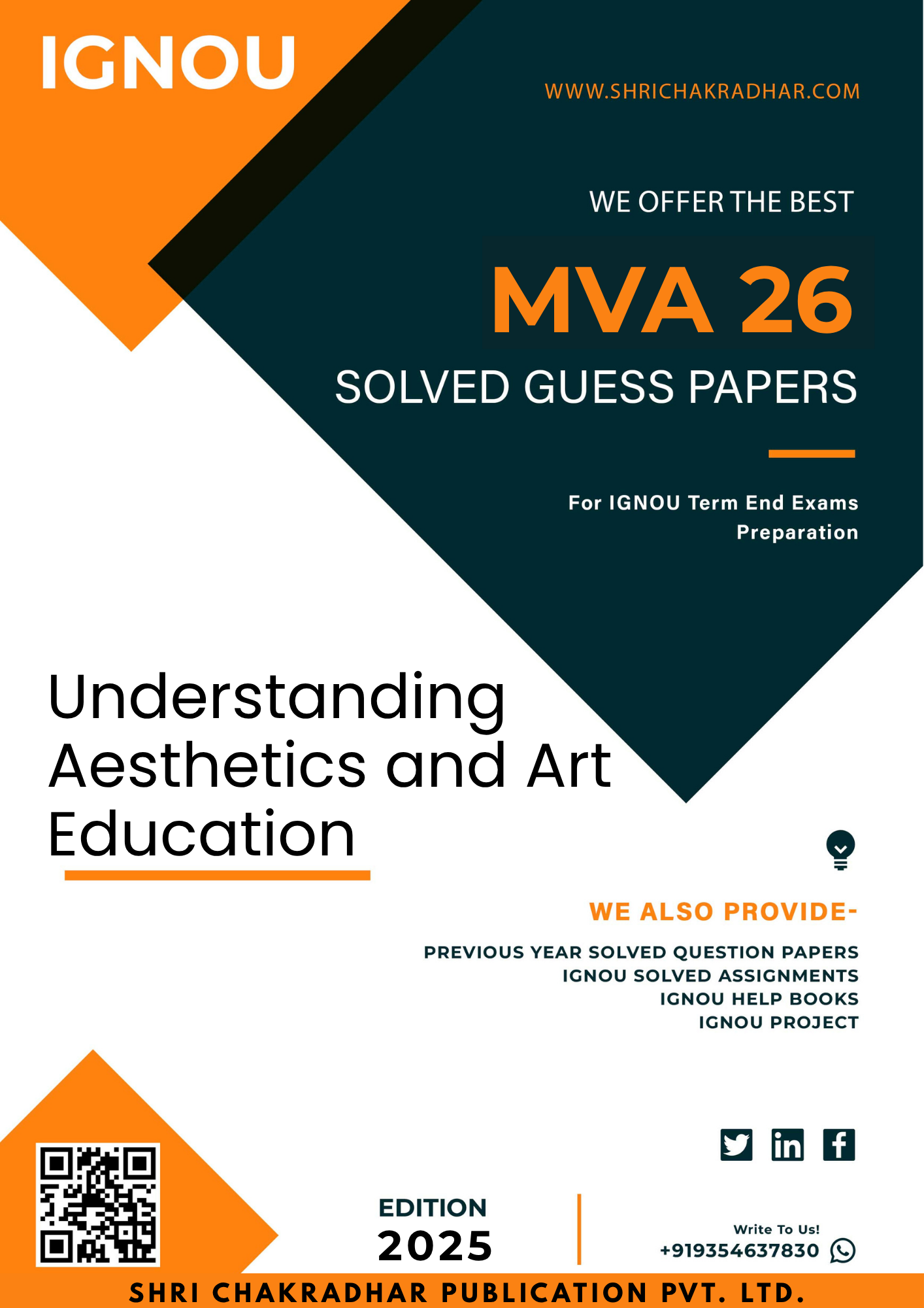 Are you looking for best quality IGNOU Solved Guess Papers Pdf Booklet & IGNOU Important Question Answers? We created IGNOU MVA 26 Solved Guess Papers with fully solved answers for your convenience. Here is the perfect IGNOU MVA 26 Important Question Answers in a descriptive way for those students who wish to pass out their upcoming IGNOU Term End Examination. These Solved Guess Papers solutions are time saving for the students because they will get each solutions of the expected questions shall be asked in the IGNOU MVA 26 question paper. Answers are well explained and language is easy for better understanding. Above all, buy this IGNOU MVA 26 Solved Guess Papers Solutions Understanding Aesthetics and Art Education Guides/Reference Book and get best help for your coming examination.